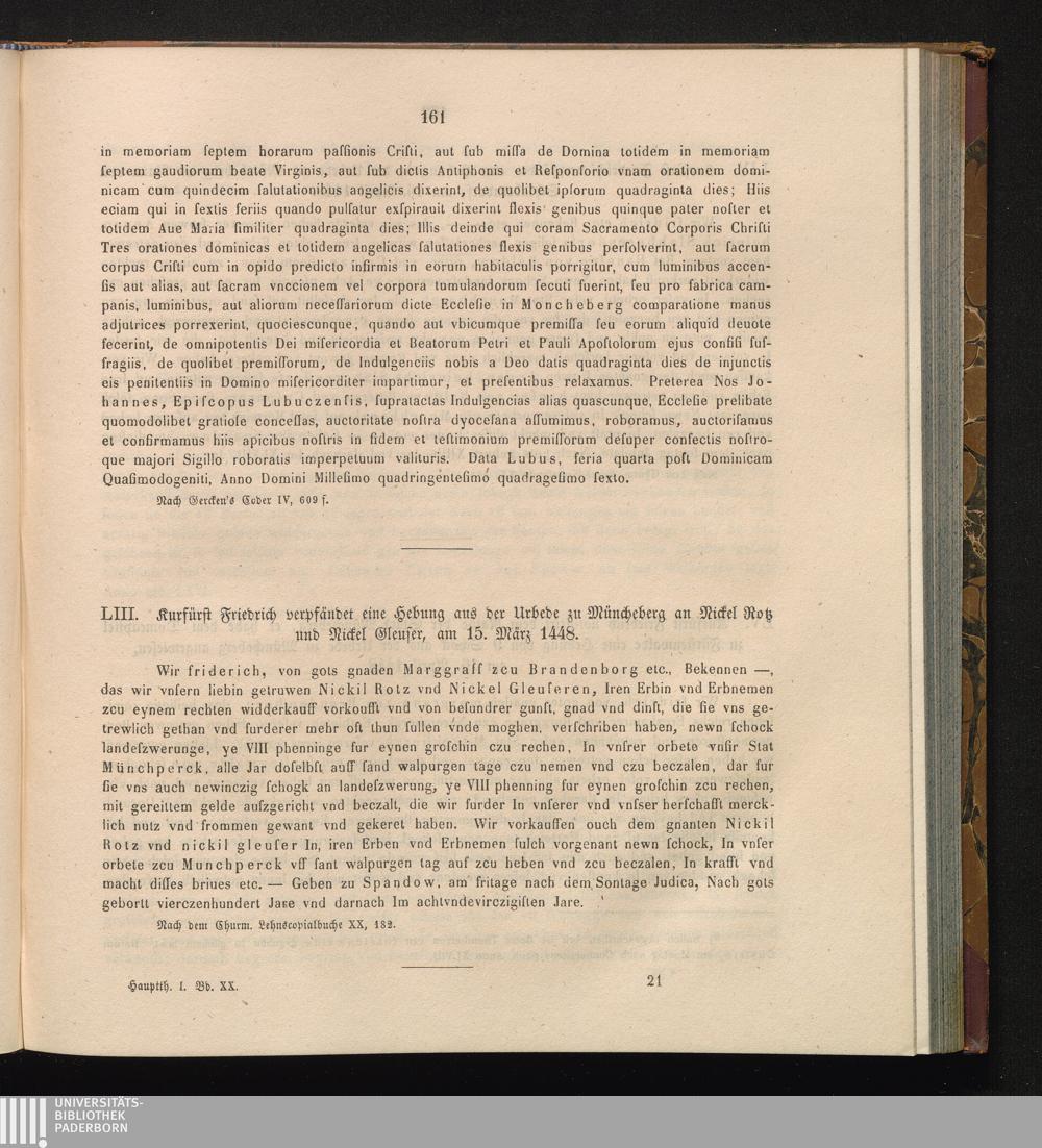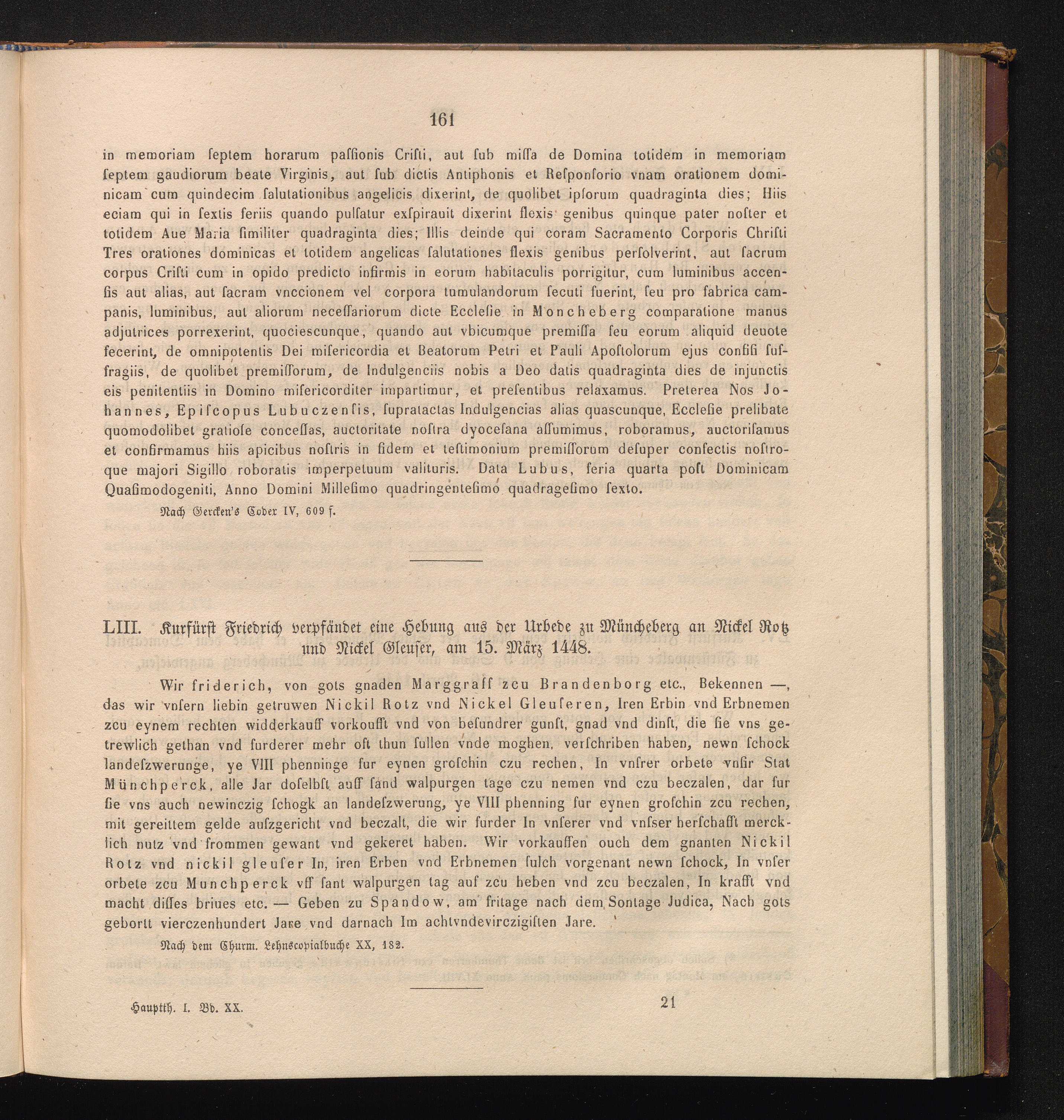 LIII. Kurfürst Friedrich verpfändet eine Hebung aus der Urbede zu Müncheberg an Nickel[...]