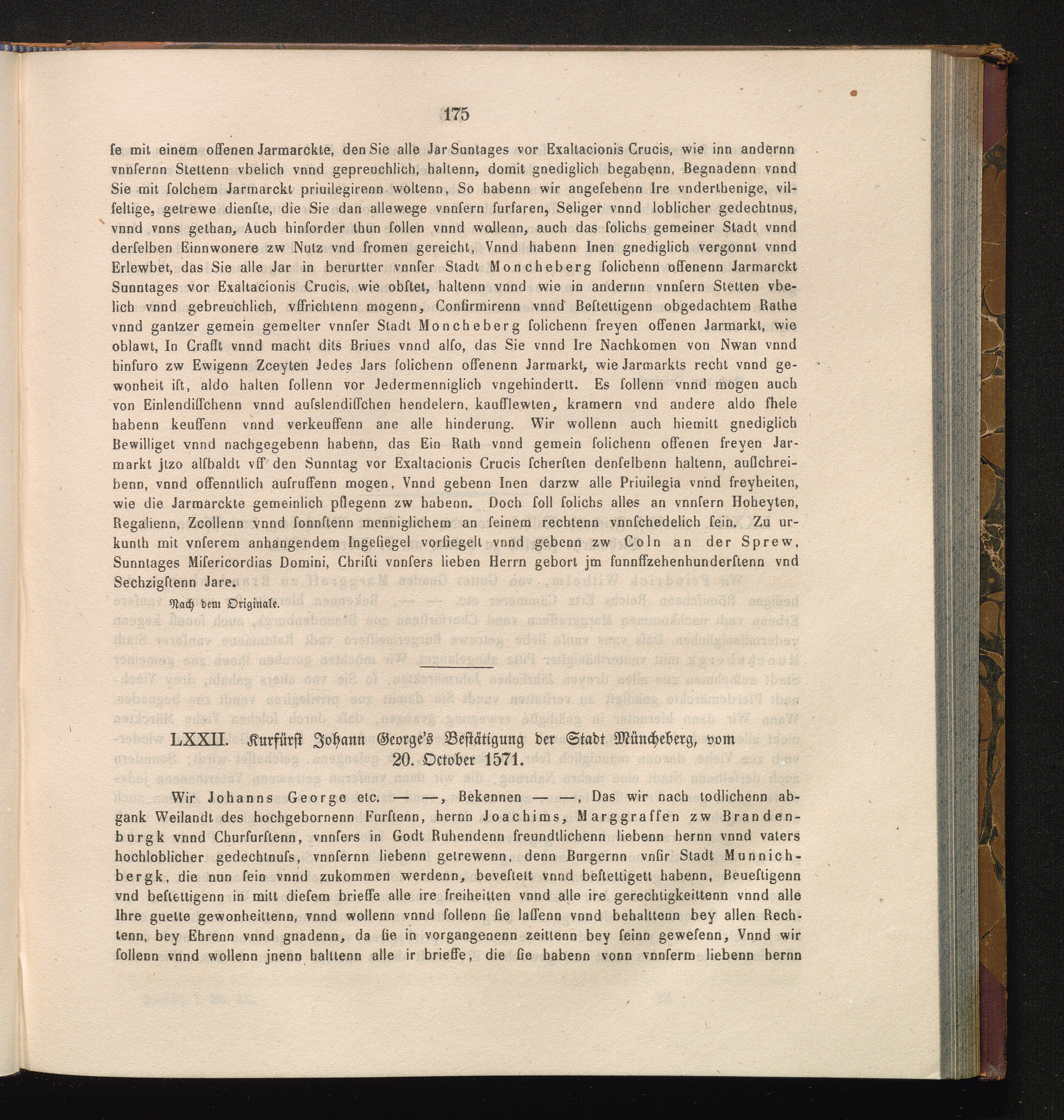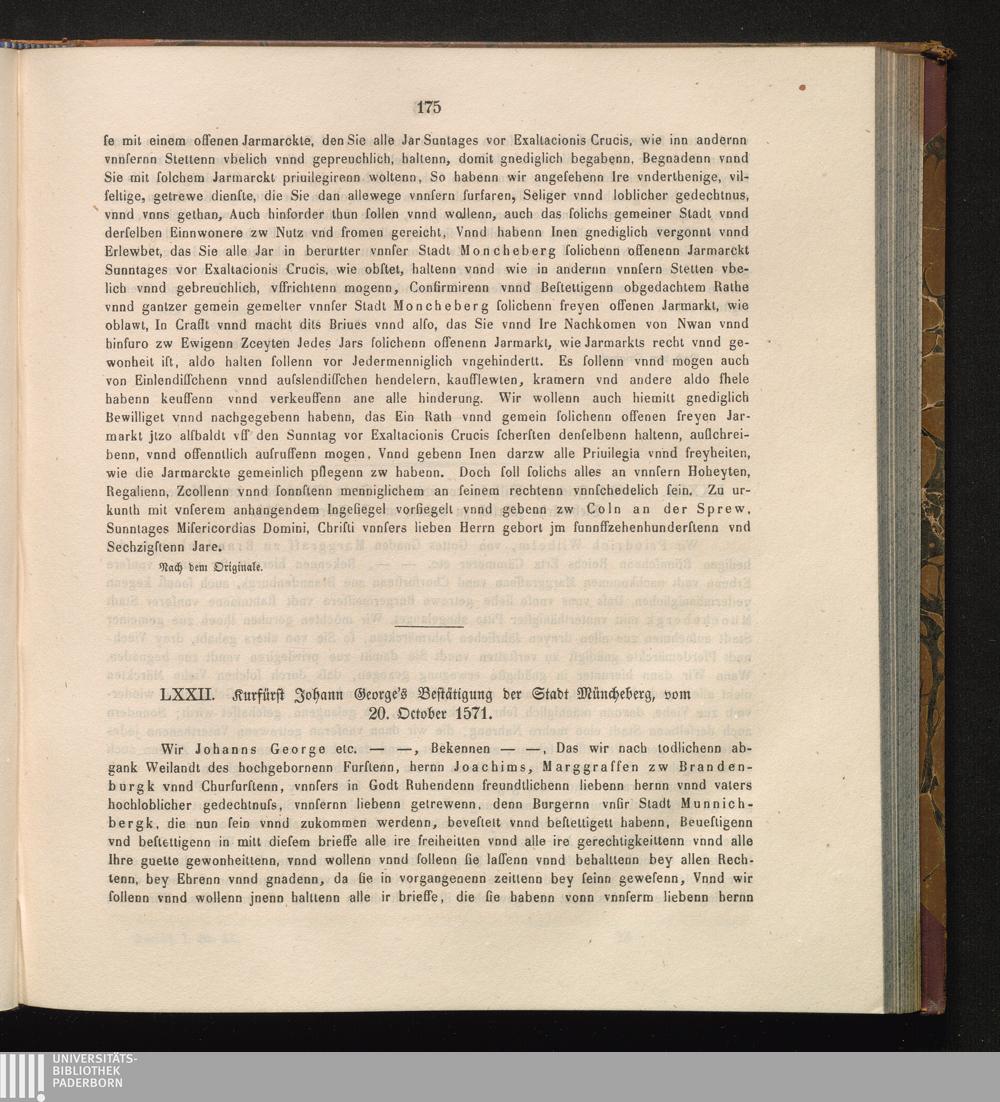 LXXII. Kurfürst Johann George's Bestätigung der Stadt Müncheberg, vom 20. October[...]