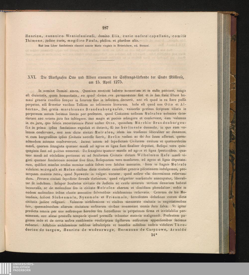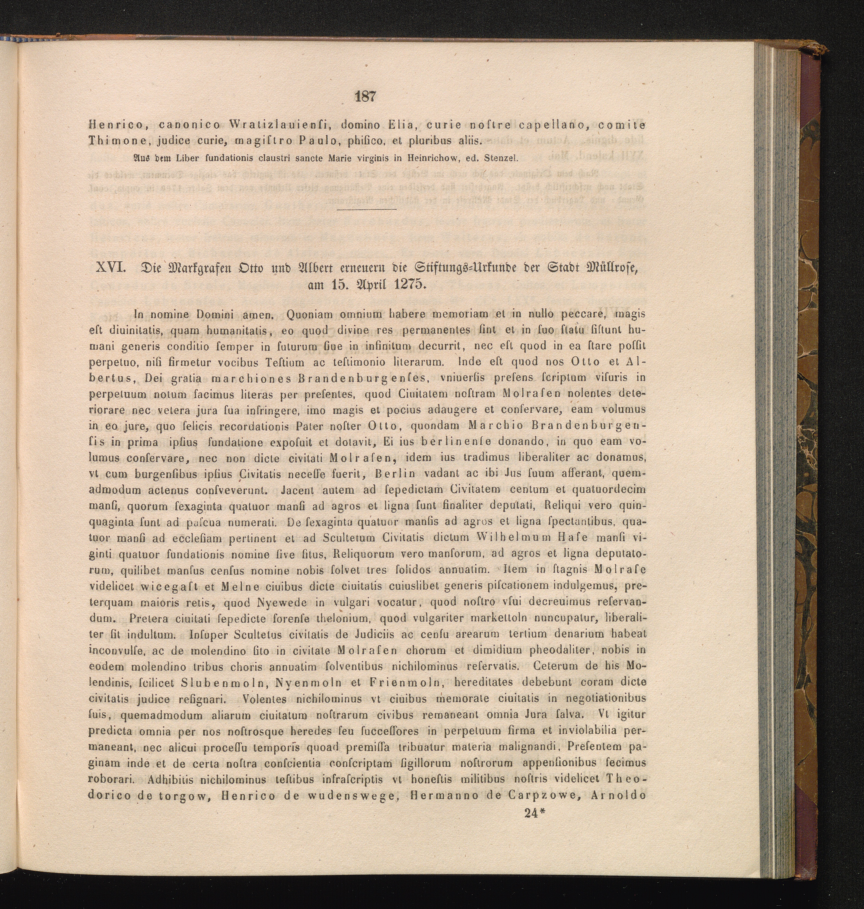 XVI. Die Markgrafen Otto und Albert erneuern die Stiftungs-Urkunde der Stadt Müllrose,[...]