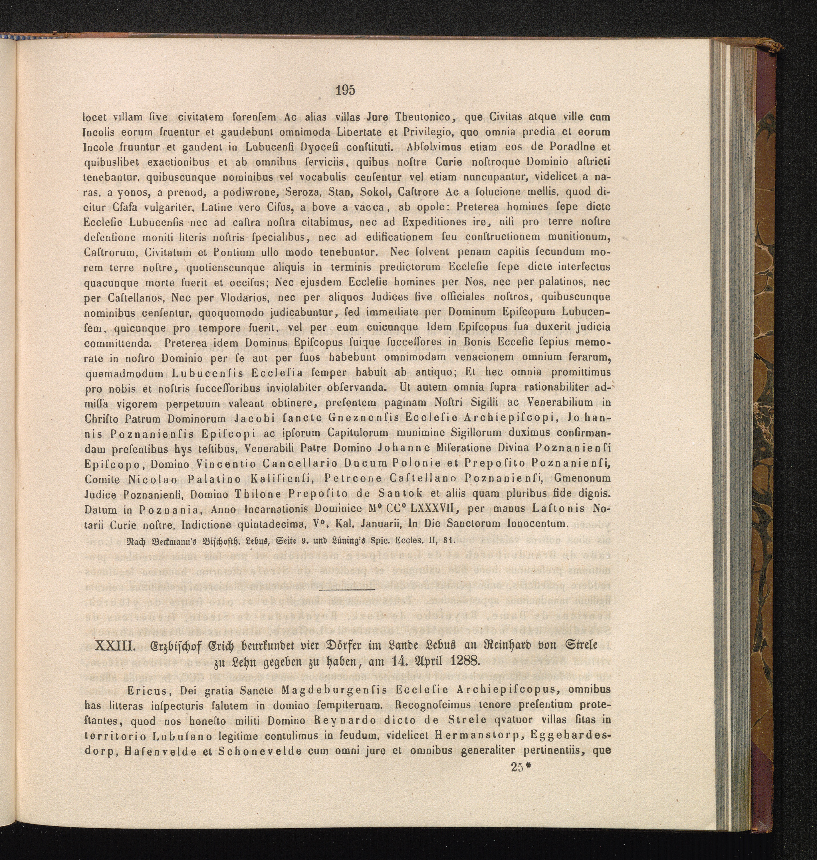 XXIII. Erzbischof Erich beurkundet vier Dörfer im Lande Lebus an Reinhard von Strele[...]