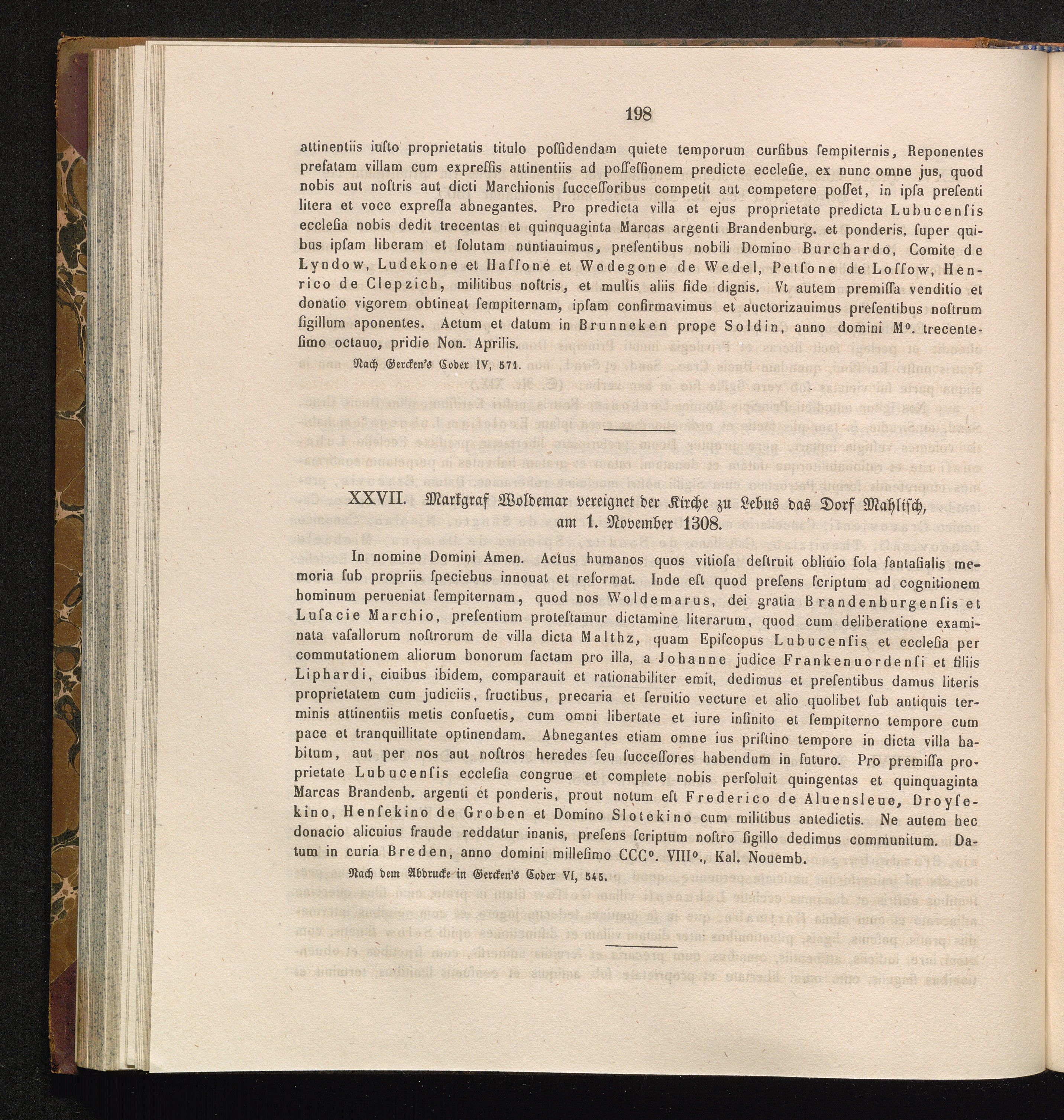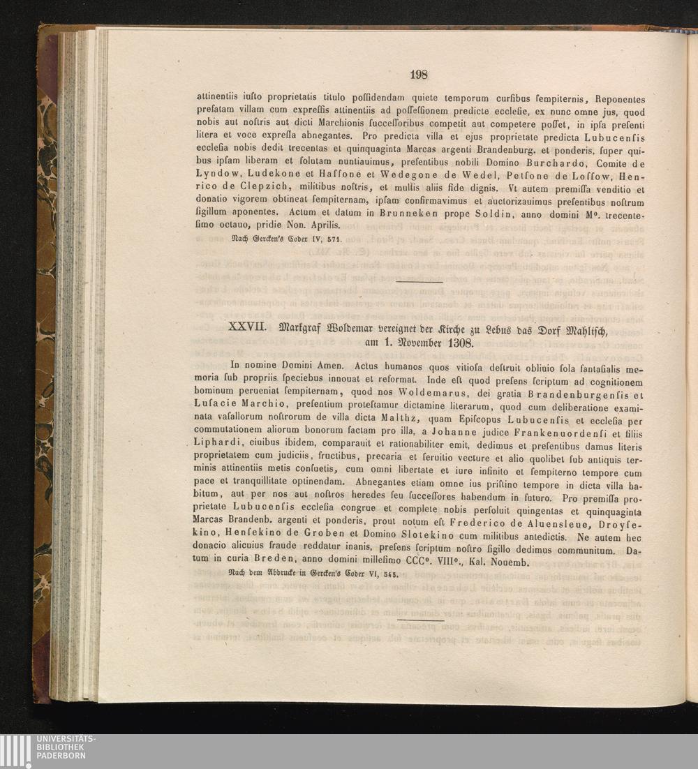 XXVII. Markgraf Woldemar vereignet der Kirche zu Lebus das Dorf Mahlisch, am 1. November[...]