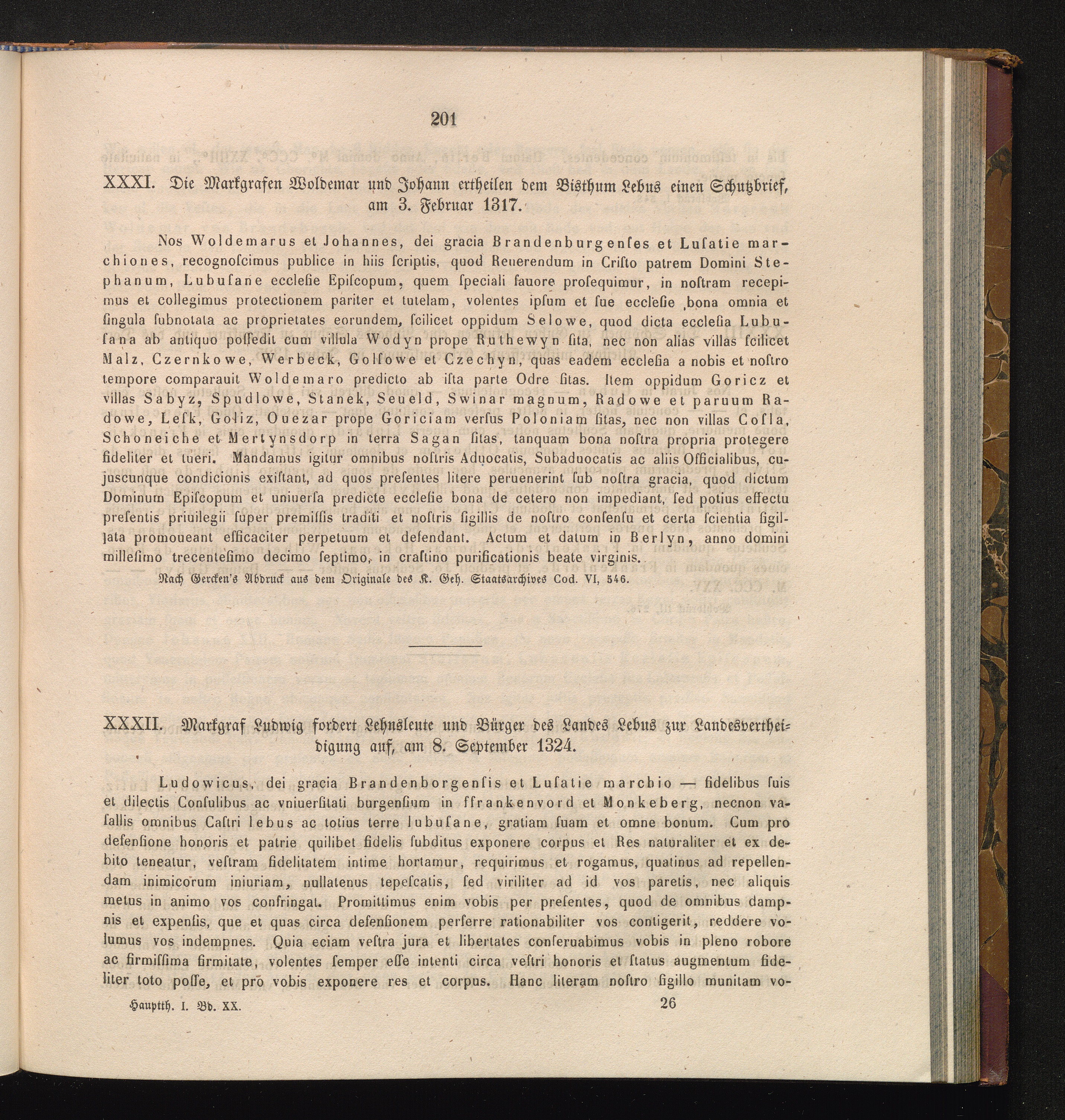 XXXII. Markgraf Ludwig fordert Lehnsleute und Bürger des Landes Lebus zur Landesvertheidigung[...]