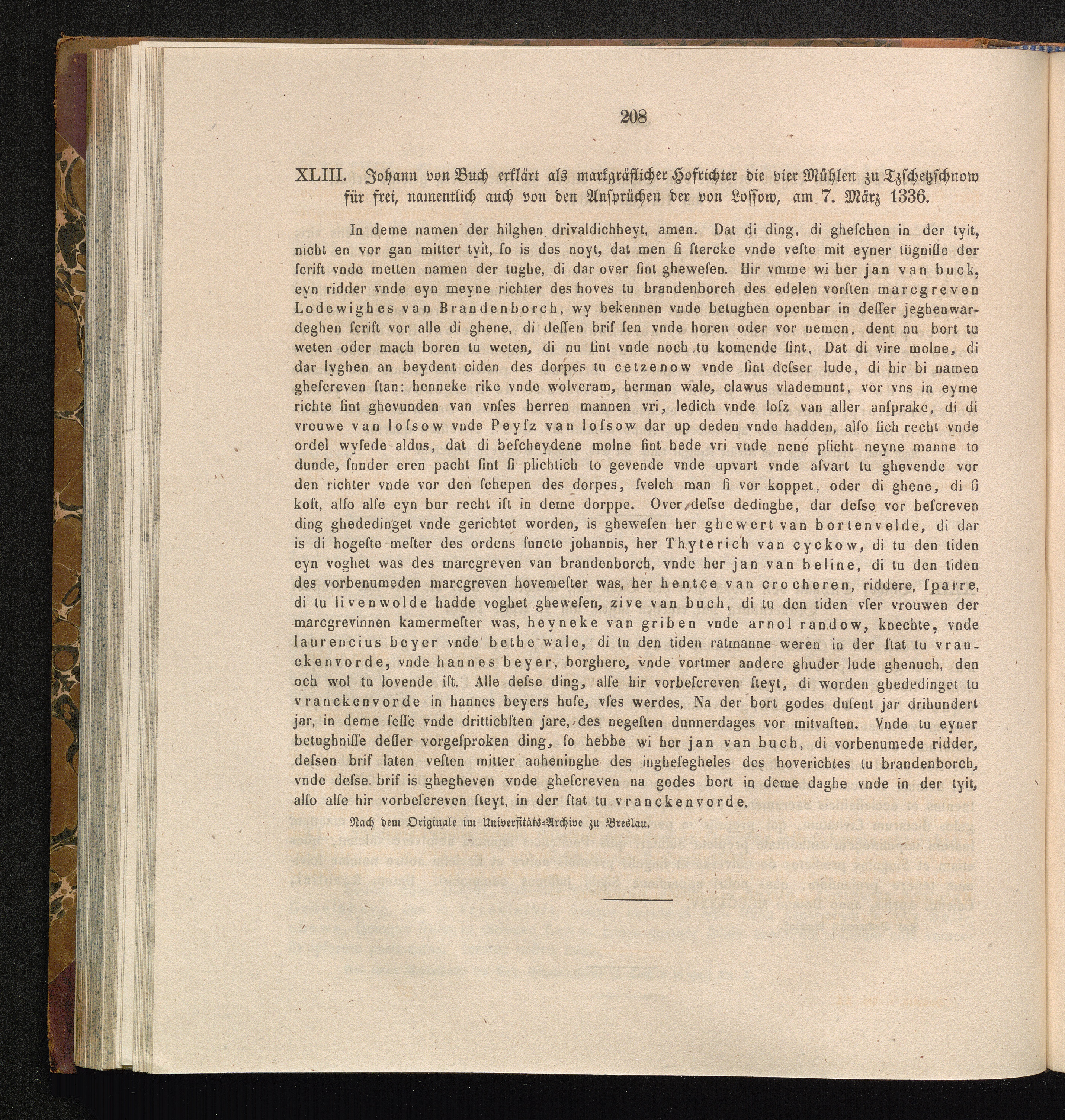 XLIII. Johann von Buch erklärt als markgräflicher Hofrichter die vier Mühlen zu Tzschetzschnow[...]