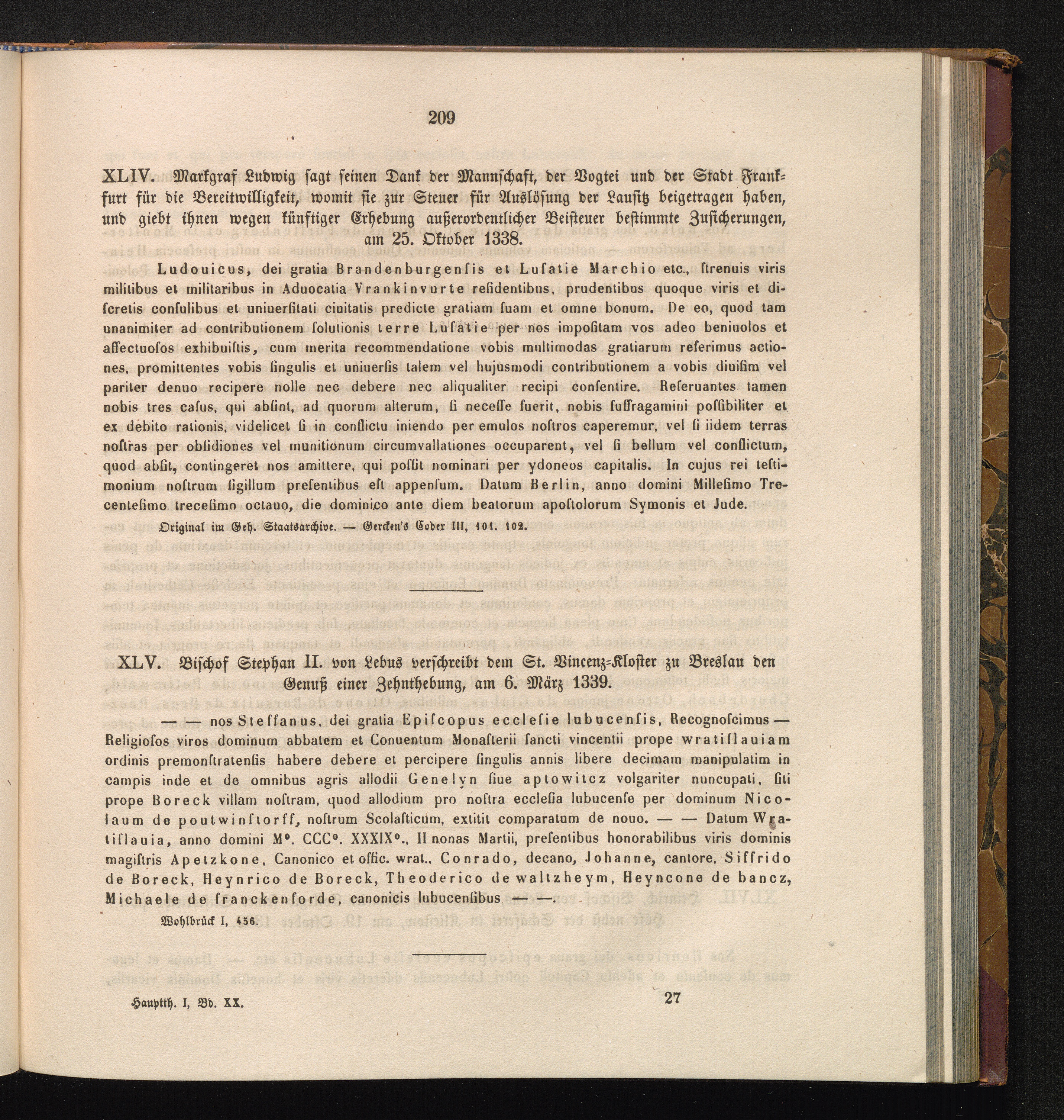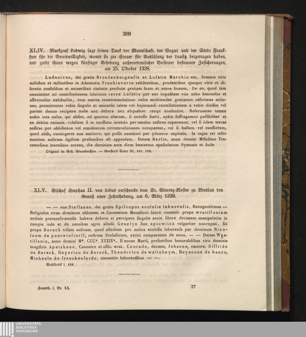 XLV. Bischof Stephan II. von Lebus verschreibt dem St. Vinzenz-Kloster zu Breslau[...]