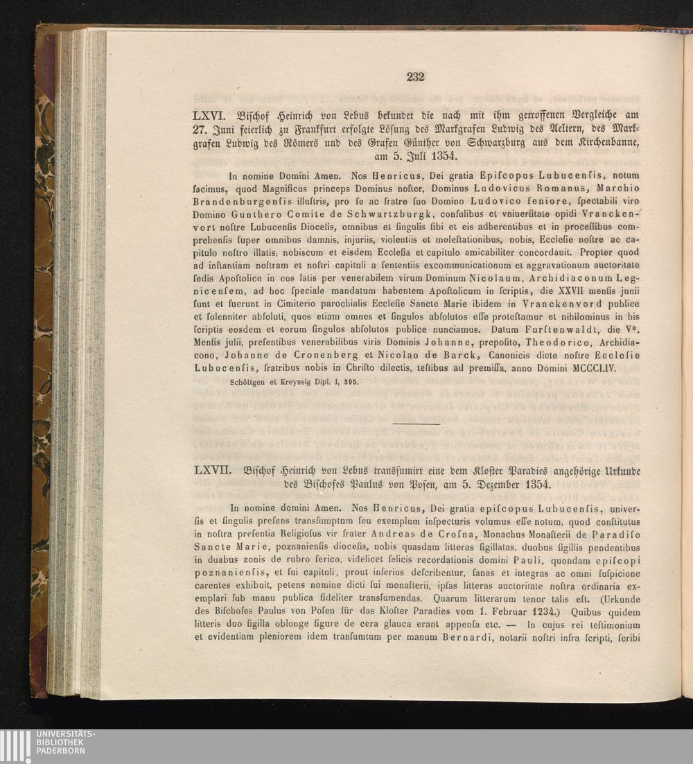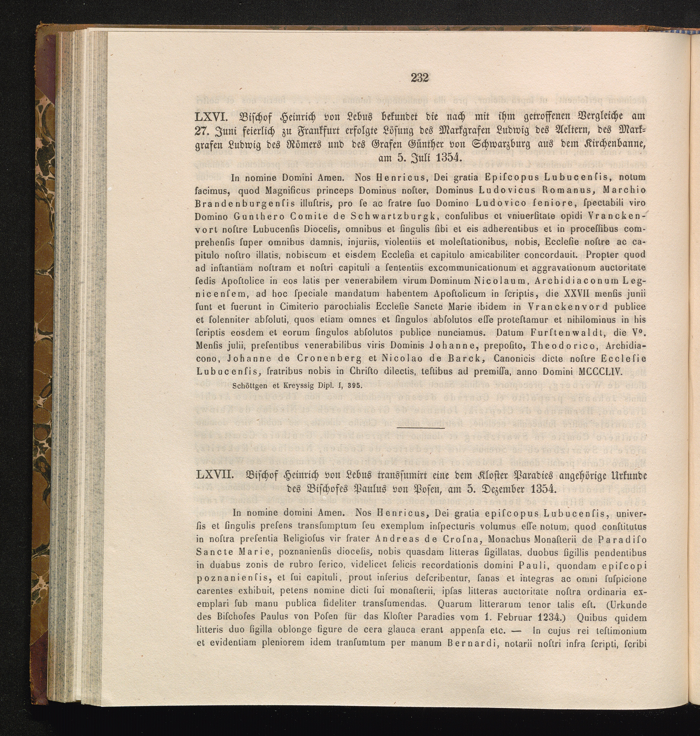 LXVII. Bischof Heinrich von Lebus transsumirt eine dem Kloster Paradies angehörige[...]