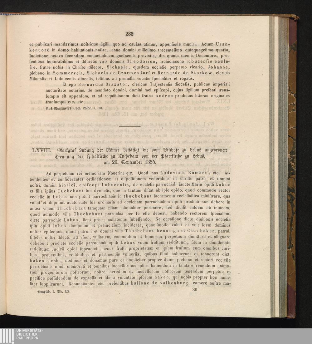 LXVIII. Markgraf Ludwig der Römer bestätigt die vom Bischofe zu Lebus angeordnete[...]