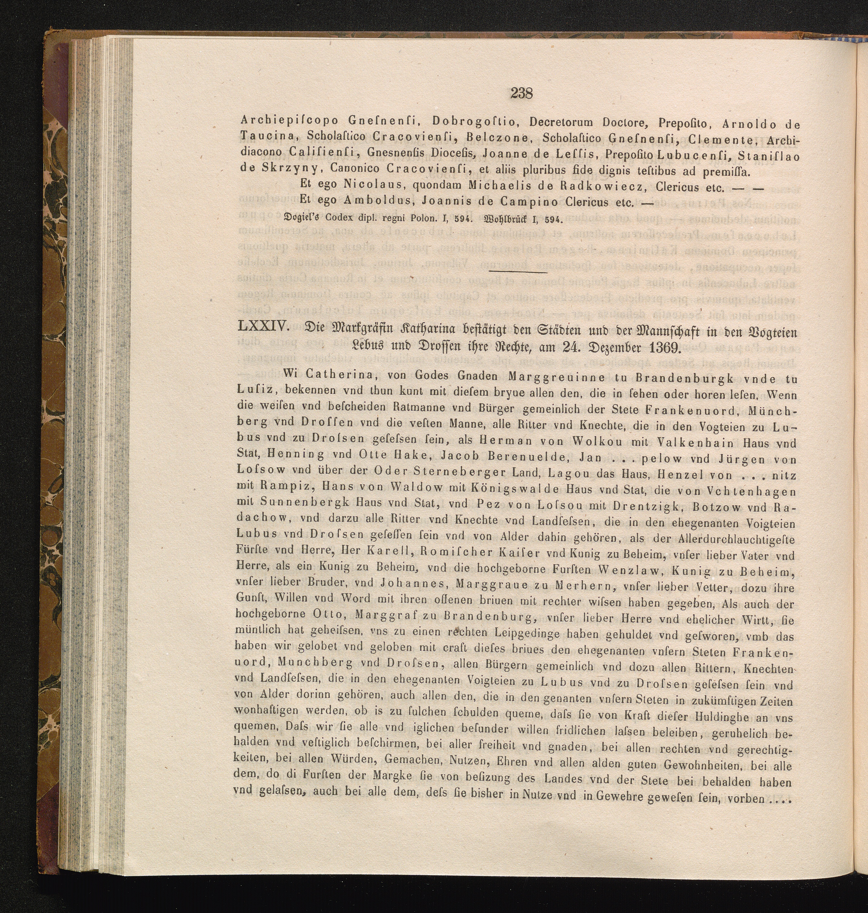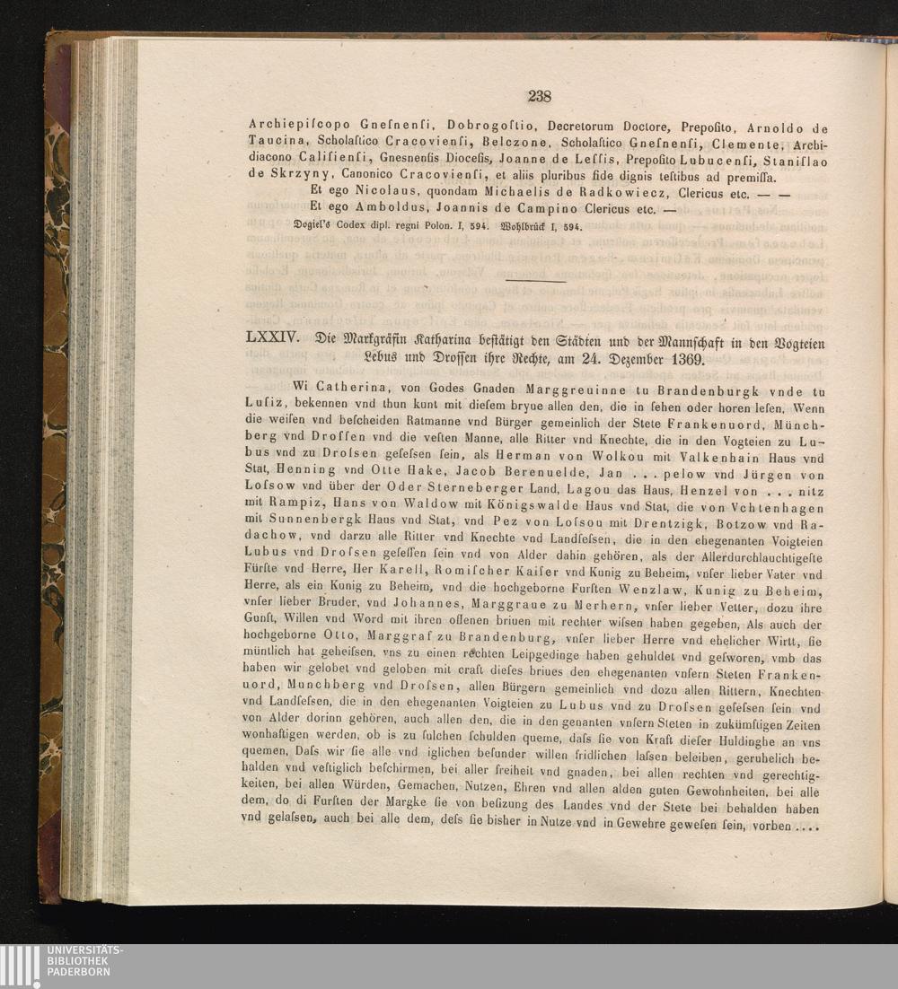 LXXIV. Die Markgräfin Katharina bestätigt den Städten und der Mannschaft in den Vogteien[...]