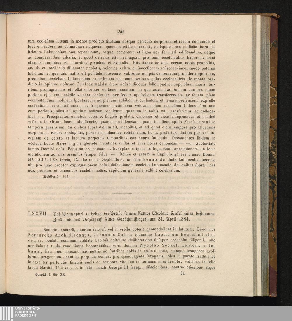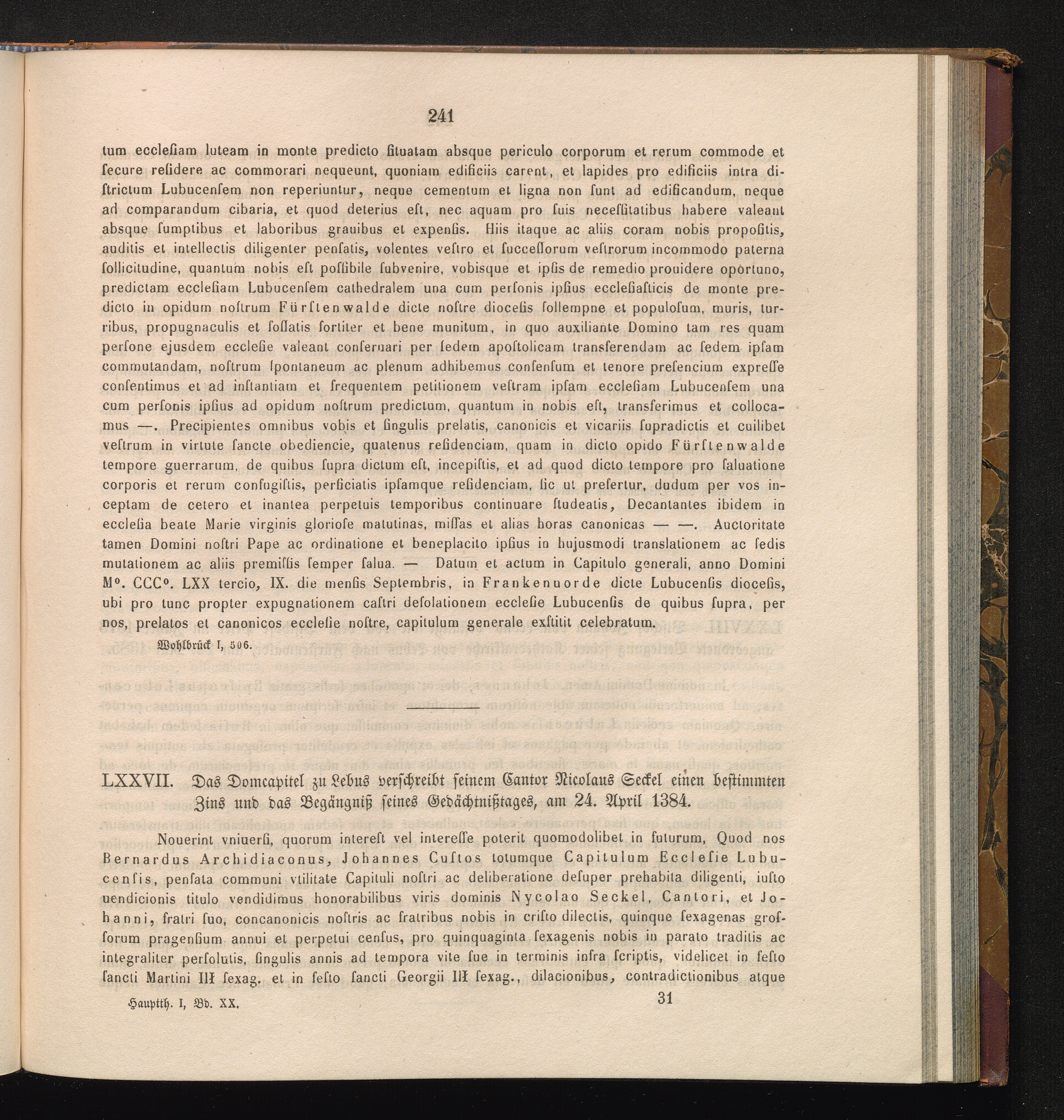 LXXVII. Das Domcapitel zu Lebus verschreibt seinem Cantor Nicolaus Seckel einen bestimmten[...]
