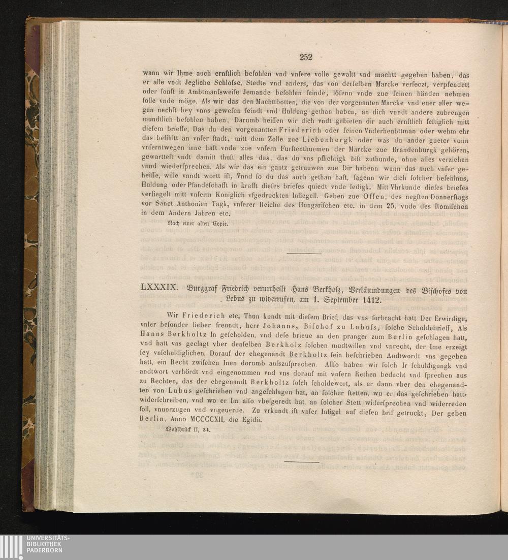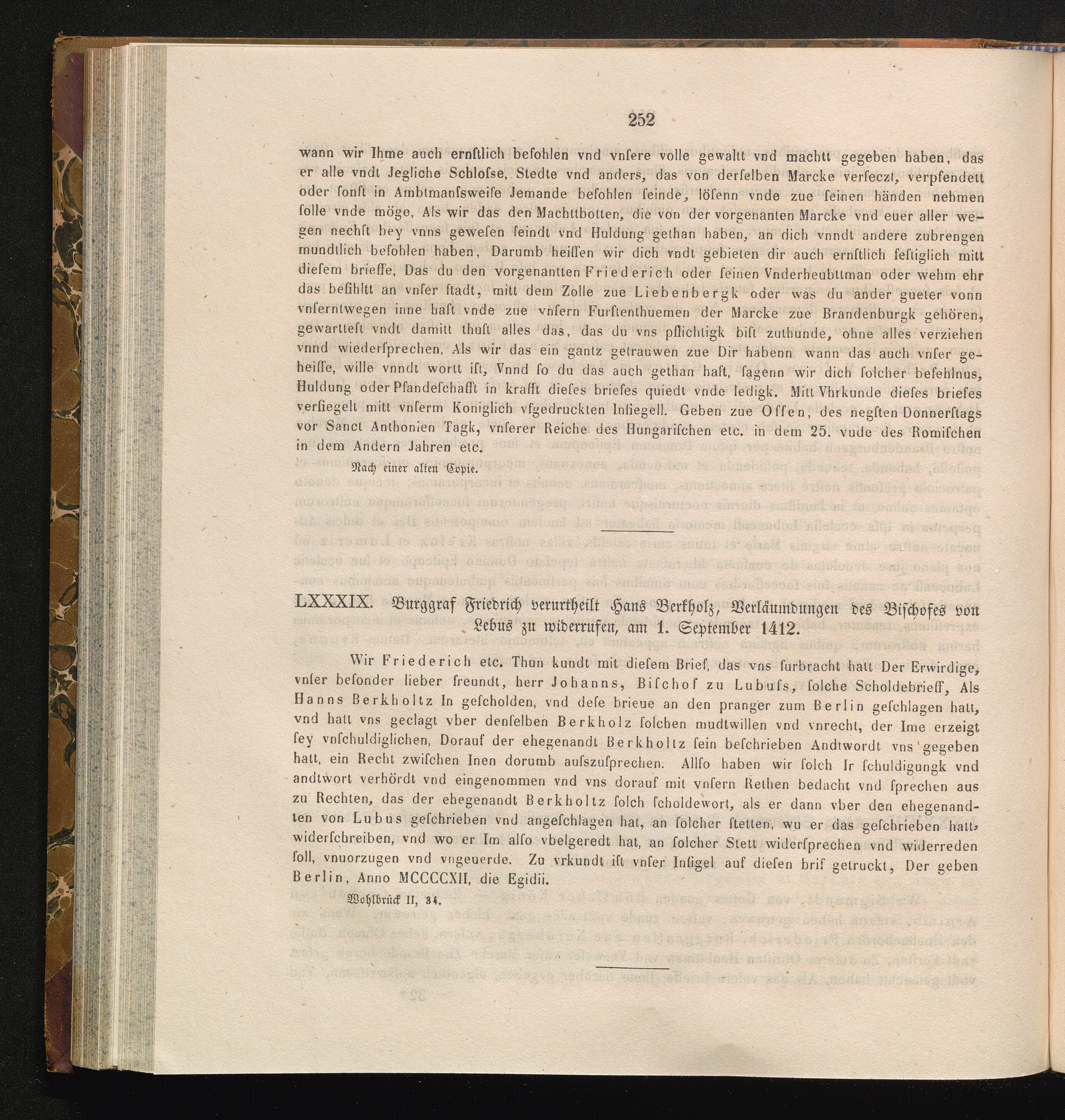 LXXXIX. Burggraf Friedrich verurtheilt Hans Berkholz, Verläumdungen des Bischofes[...]
