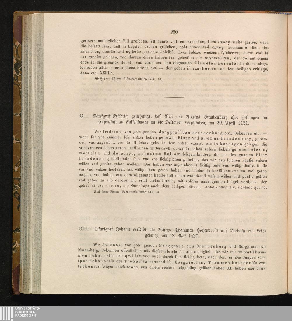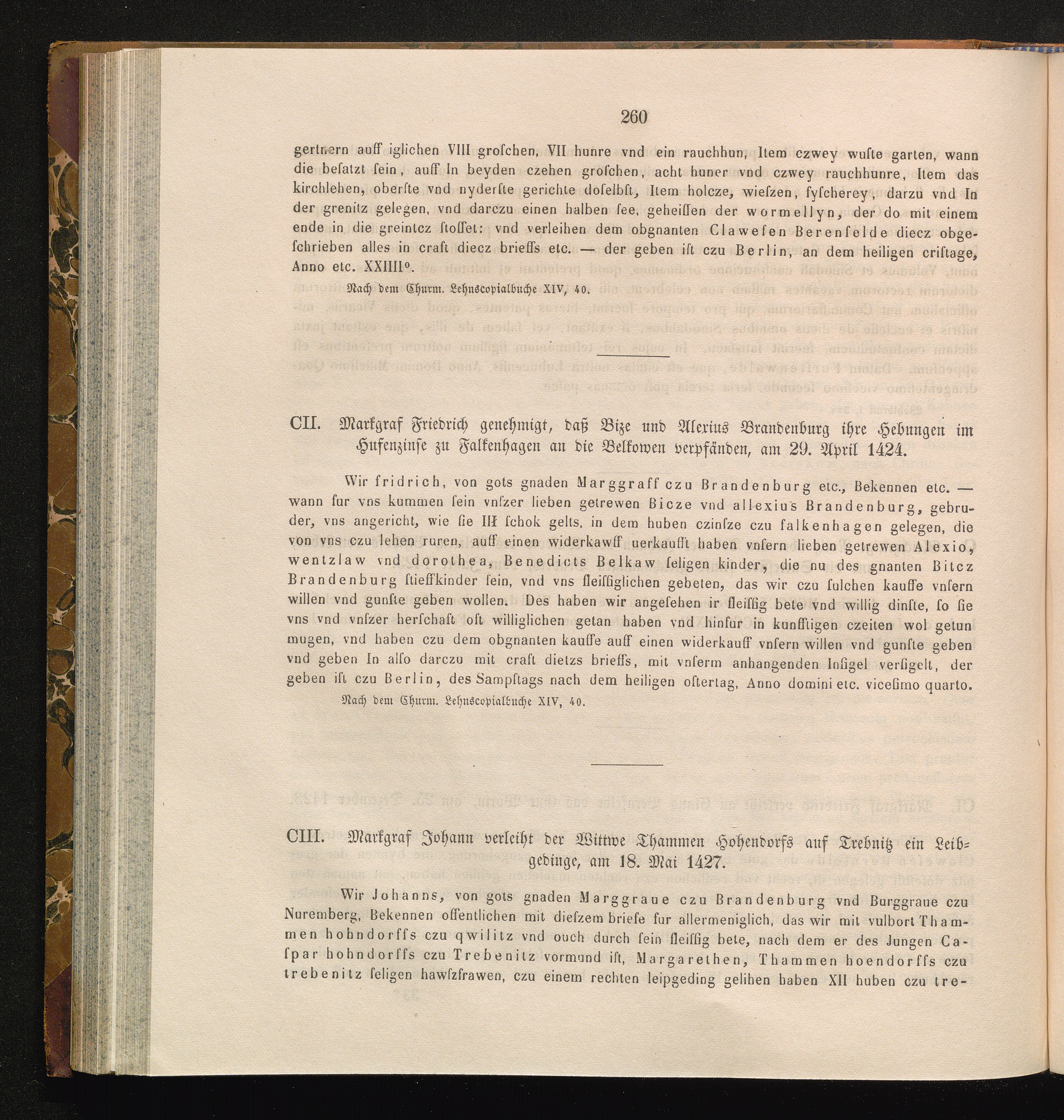 CIII. Markgraf Johann verleiht der Wittwe Thammen Hohendorfs auf Trebnitz ein Leibgedinge,[...]