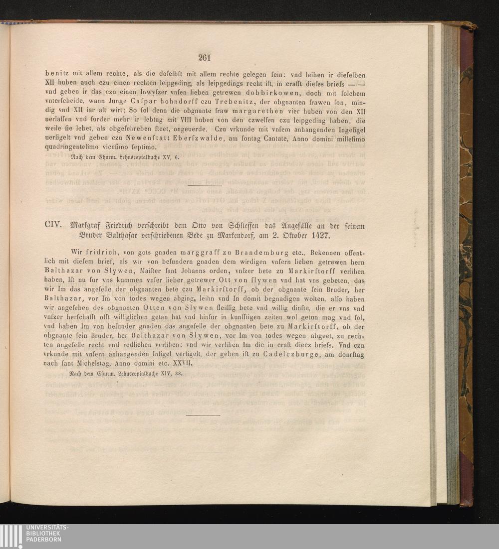 CIV. Markgraf Friedrich verschreibt dem Otto von Schlesien das Angefälle an der seinem[...]
