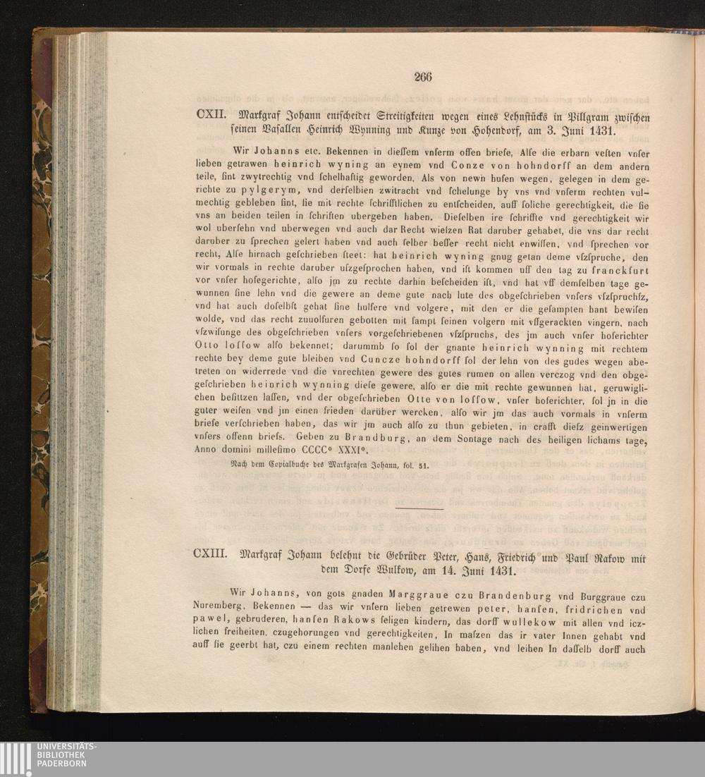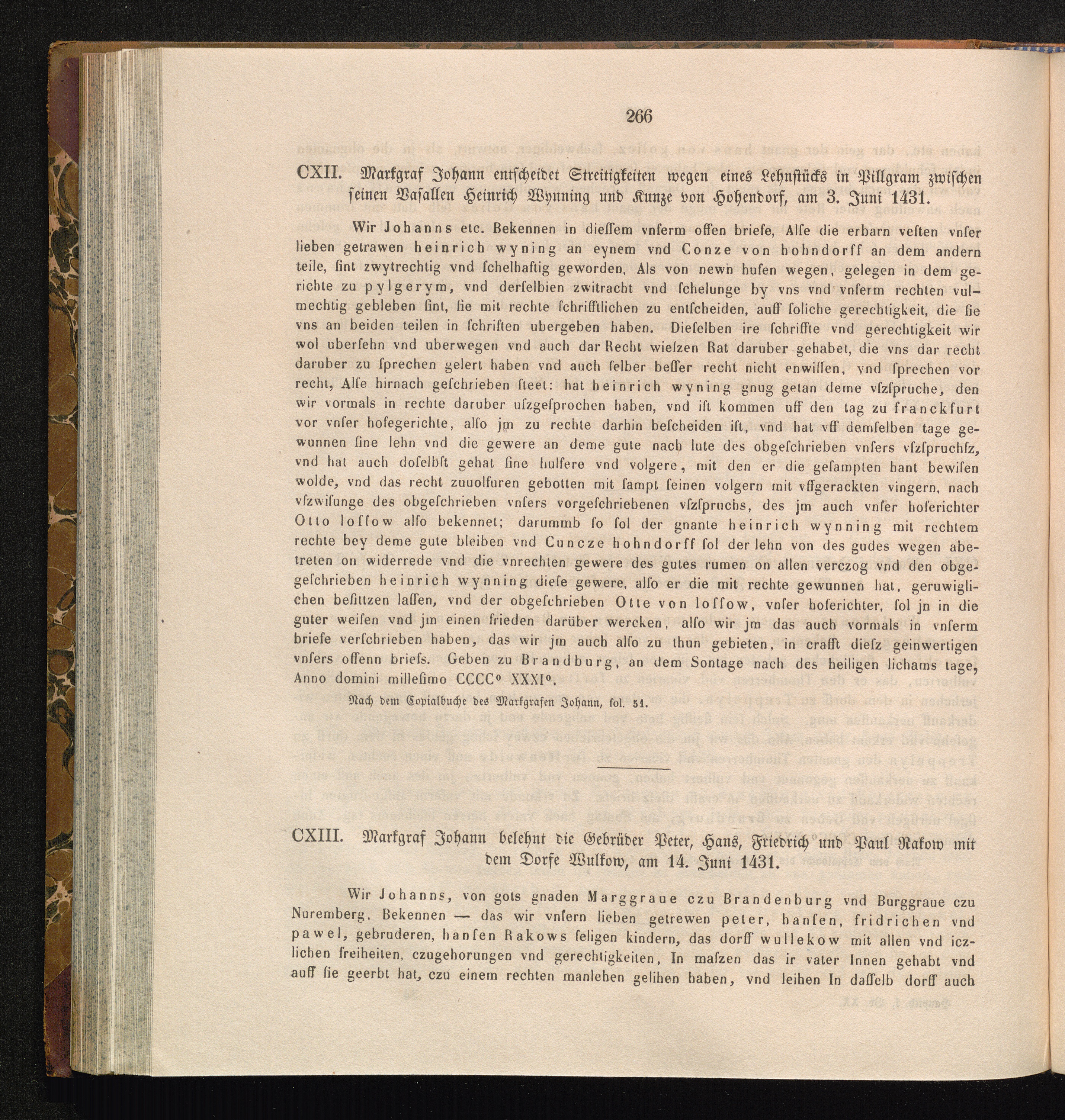 CXIII. Markgraf Johann belehnt die Gebrüder Peter, Hans, Friedrich und Paul Rakow[...]