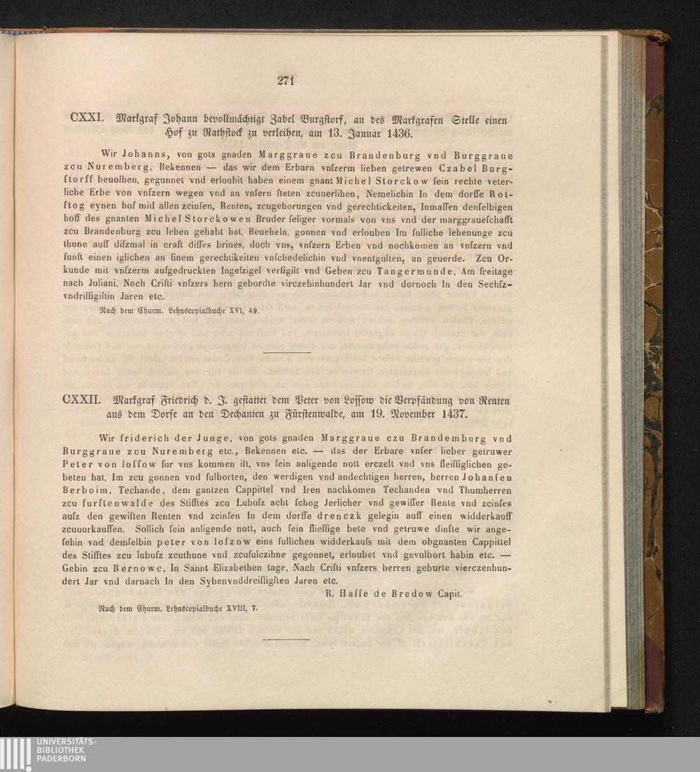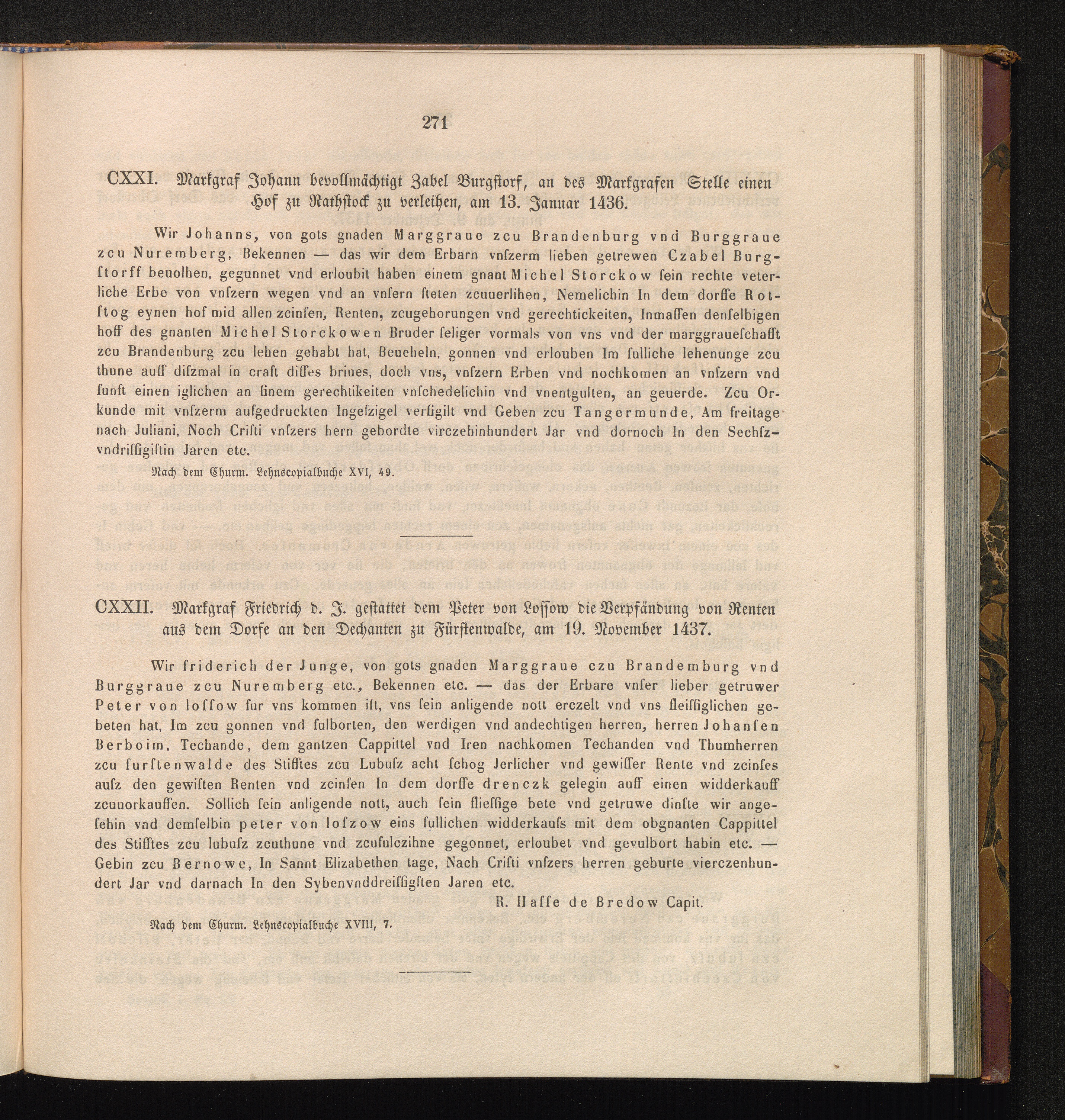 CXXII. Markgraf Friedrich d. J. gestattet dem Peter von Lossow die Verpfändung von[...]