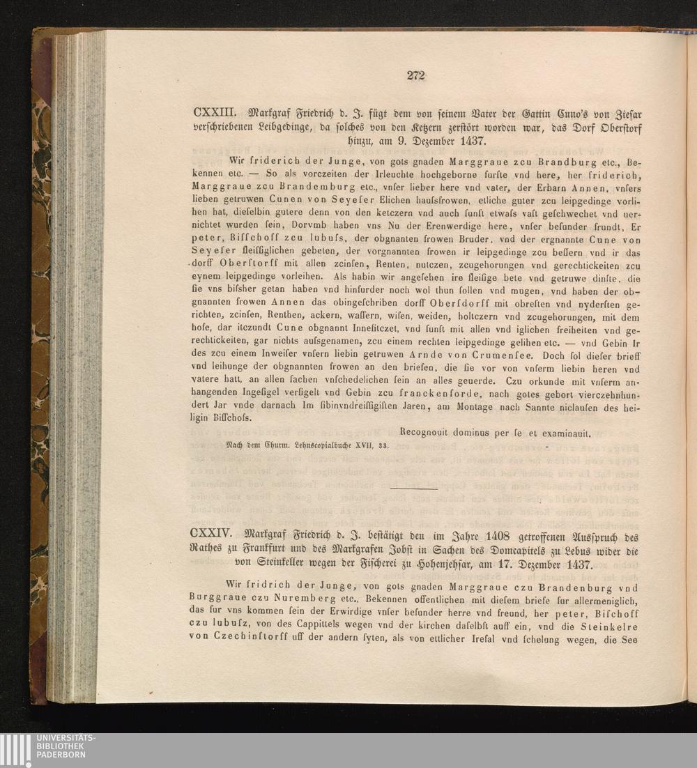 CXXIV. Markgraf Friedrich d. J. bestätigt den im Jahre 1408 getroffenen Ausspruch[...]
