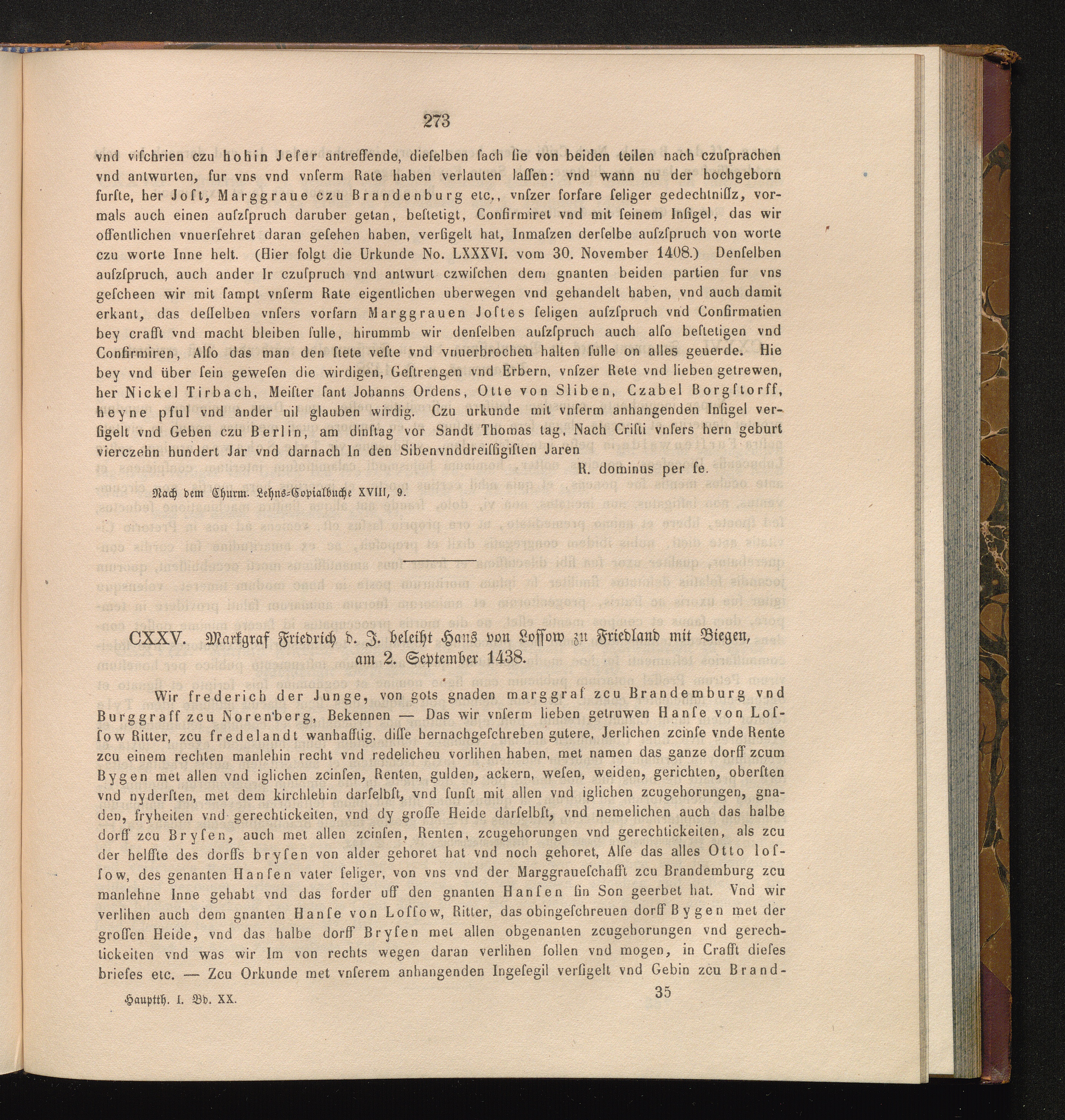 CXXV. Markgraf Friedrich d. J. beleiht Hans von Lossow zu Friedland mit Biegen, am[...]