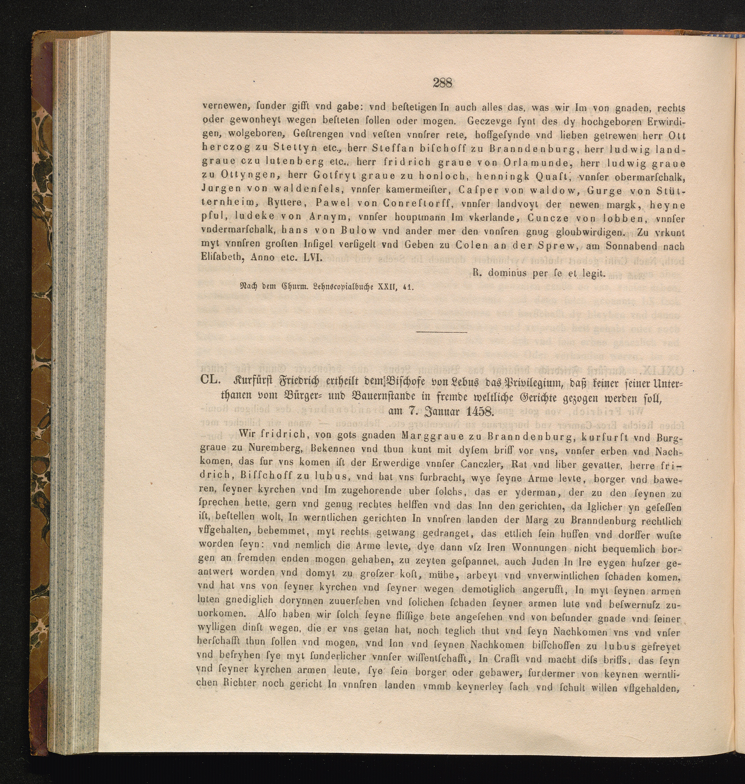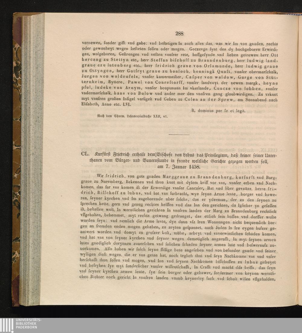 CL. Kurfürst Friedrich ertheilt dem Bischofe von Lebus das Privilegium, daß keiner[...]
