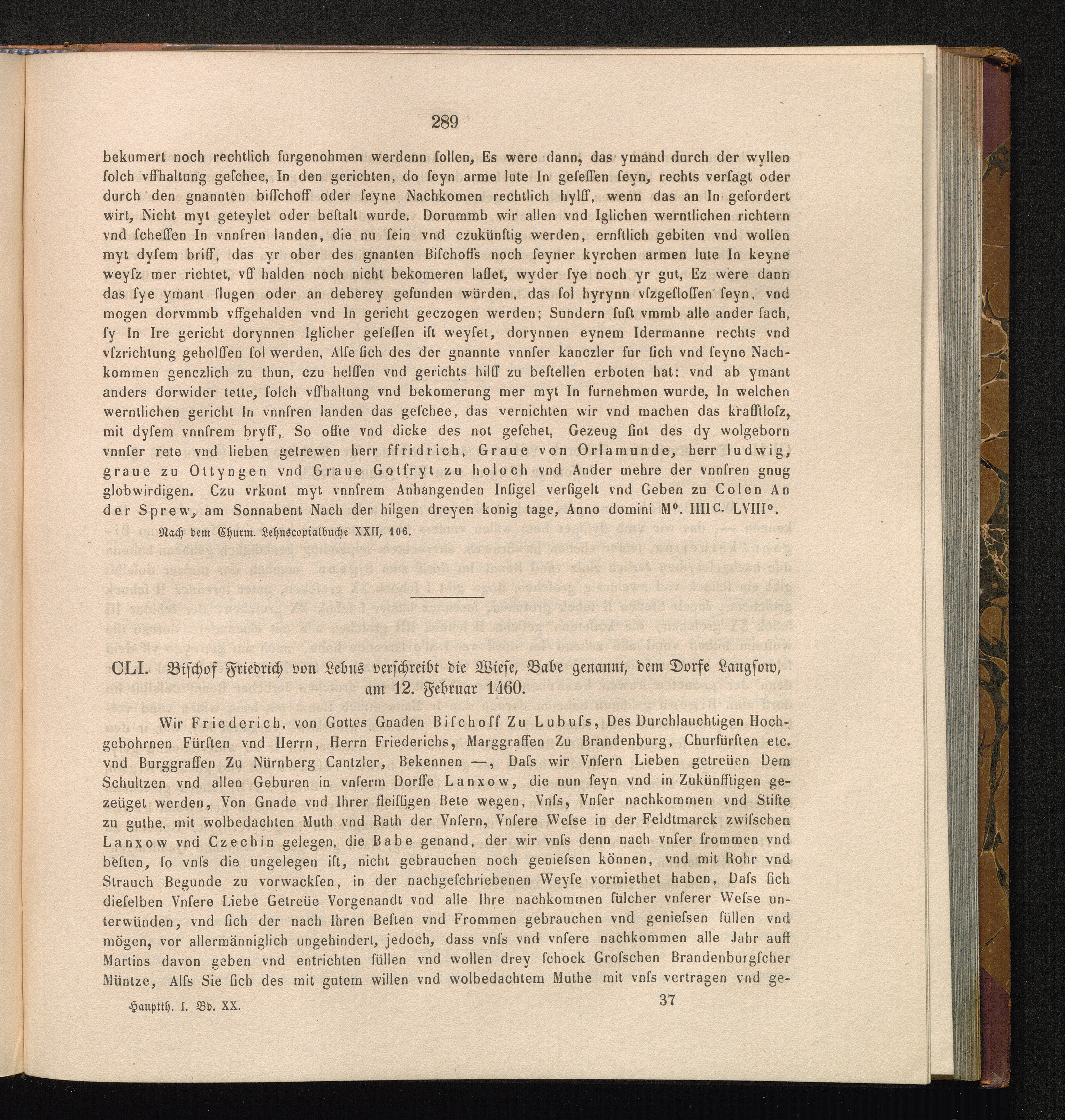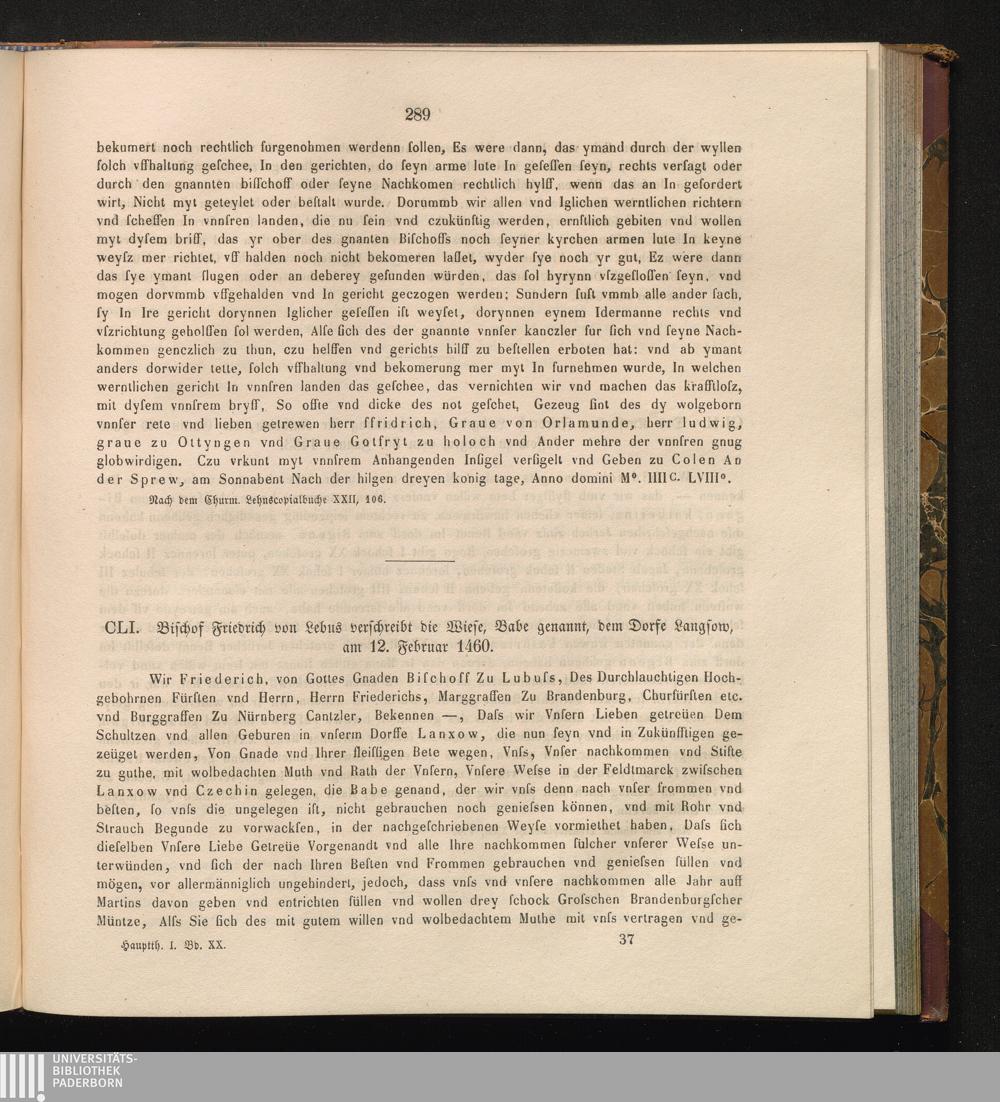 CLI. Bischof Friedrich von Lebus verschreibt die Wiese, Babe genannt, dem Dorfe Langsow,[...]