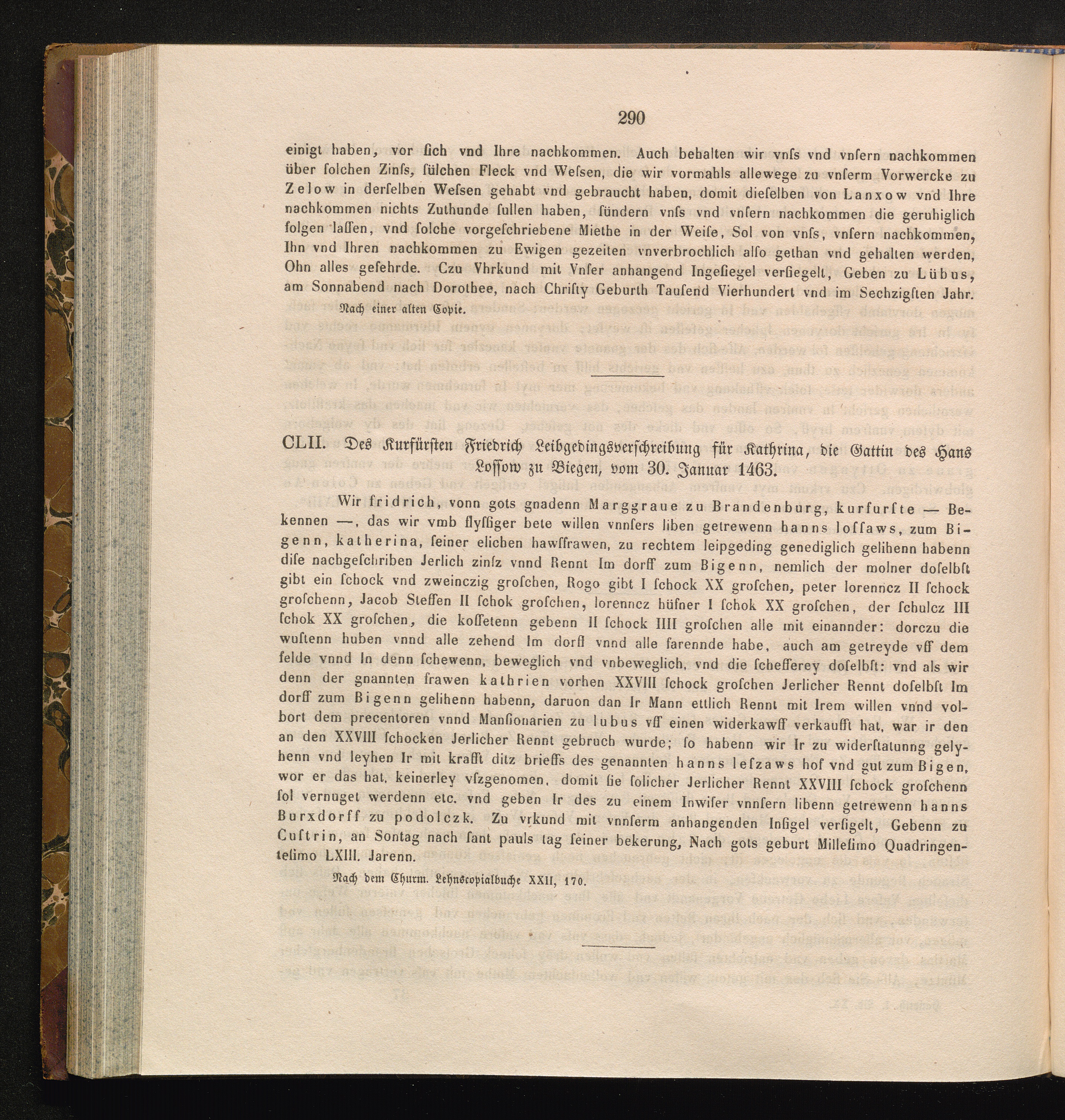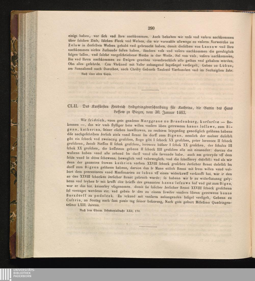 CLII. Des Kurfürsten Friedrich Leibgedingsverschreibung für Katharina, die Gattin[...]