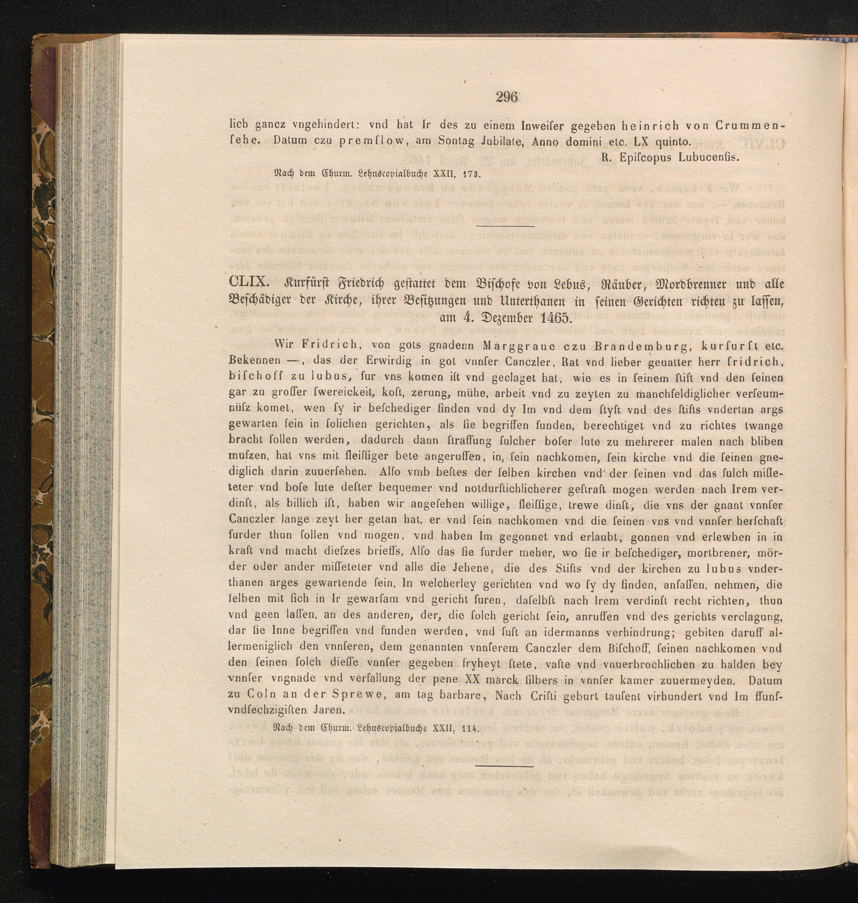 CLIX. Kurfürst Friedrich gestattet dem Bischofe von Lebus, Räuber, Mordbrenner und[...]