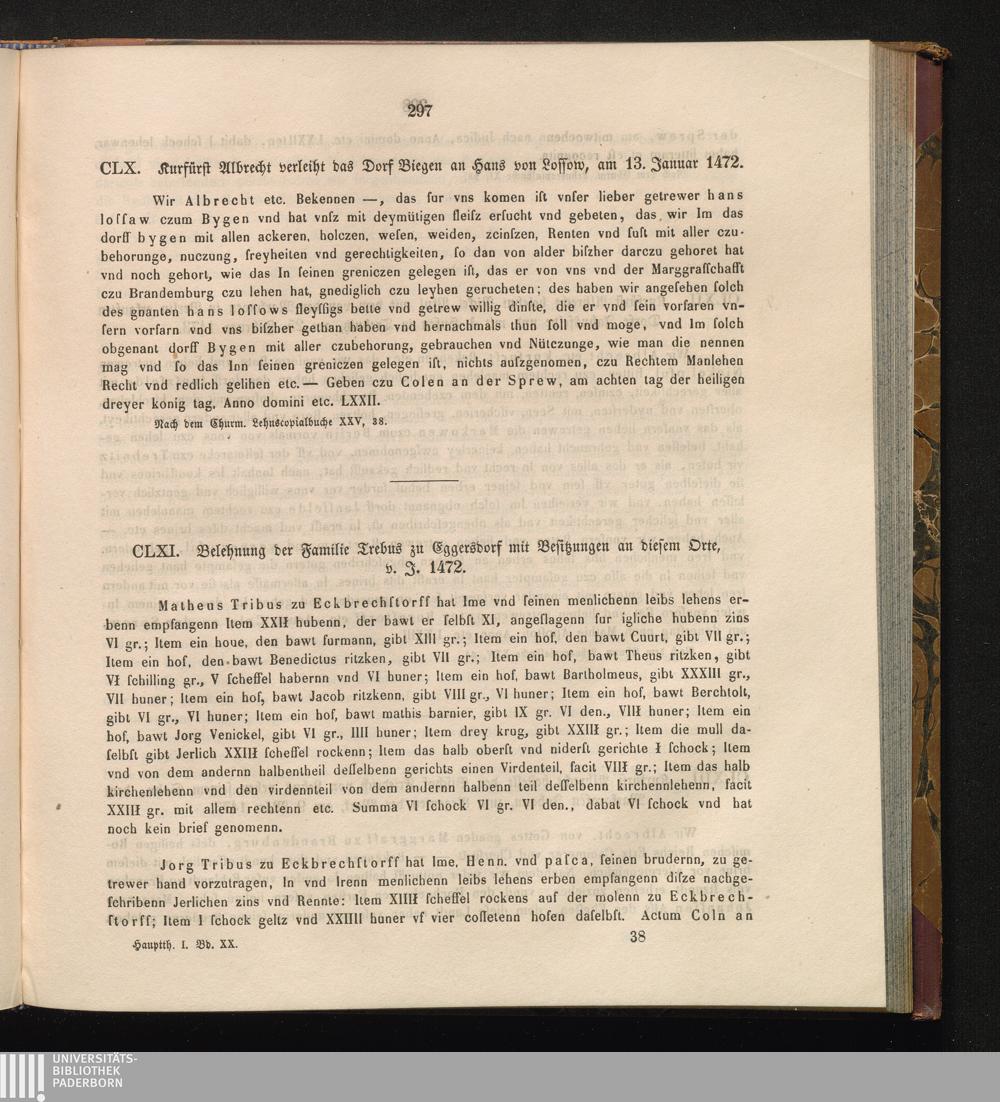 CLXI. Belehnung der Familie Trebus zu Eggersdorf mit Besitzungen an diesem Orte,[...]