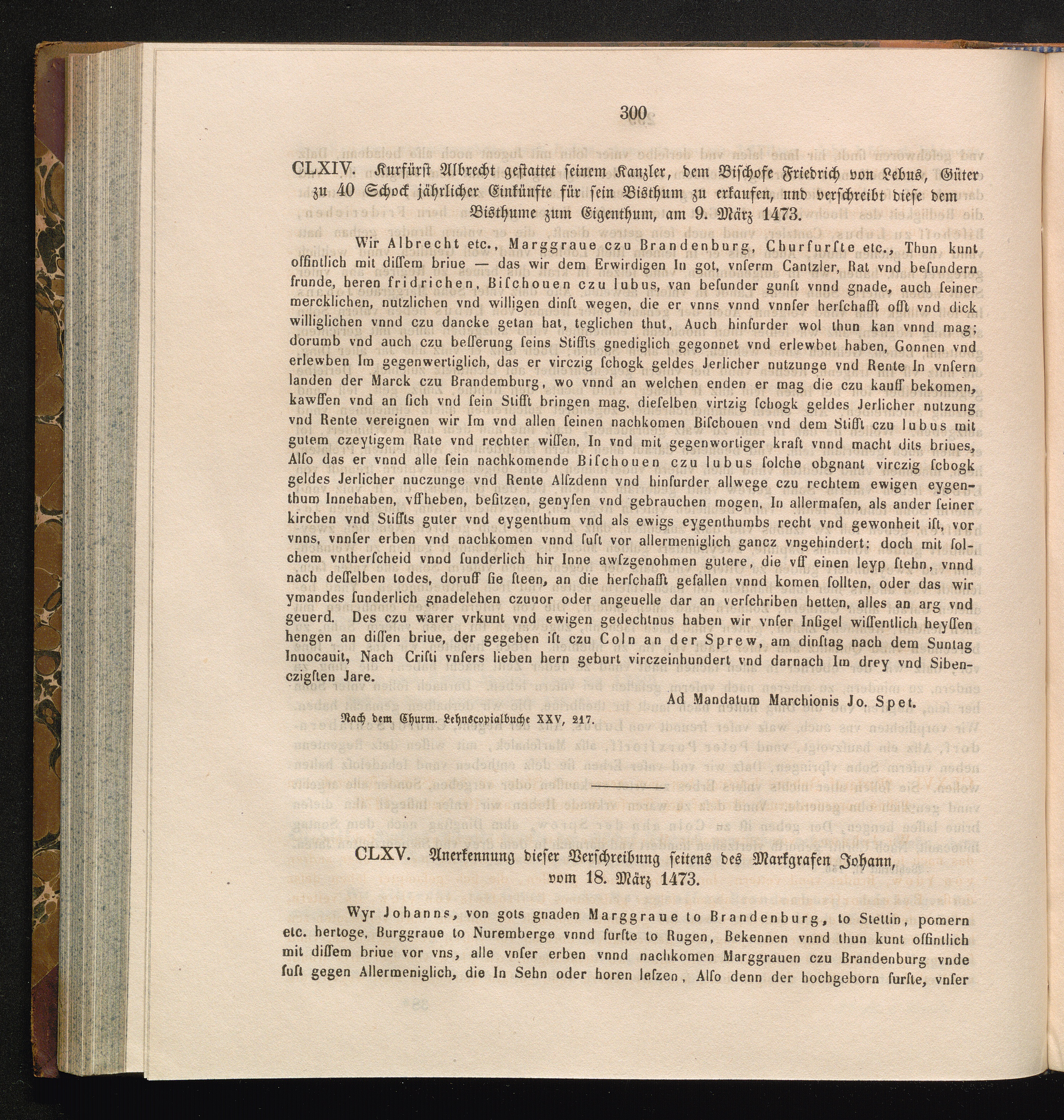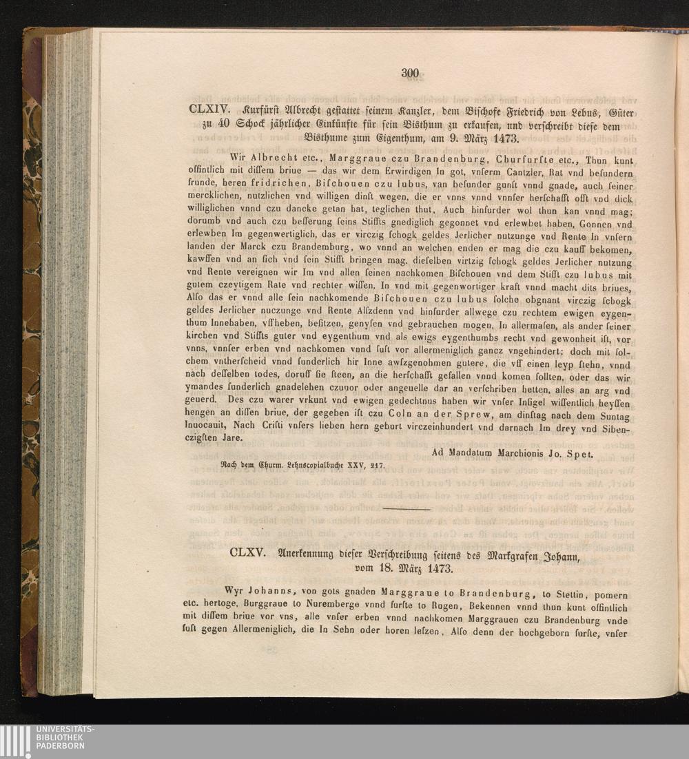 CLXV. Anerkennung dieser Verschreibung seitens des Markgrafen Johann, vom 18. März[...]