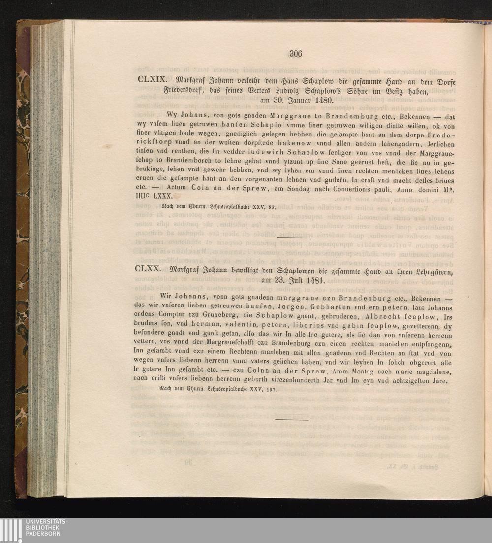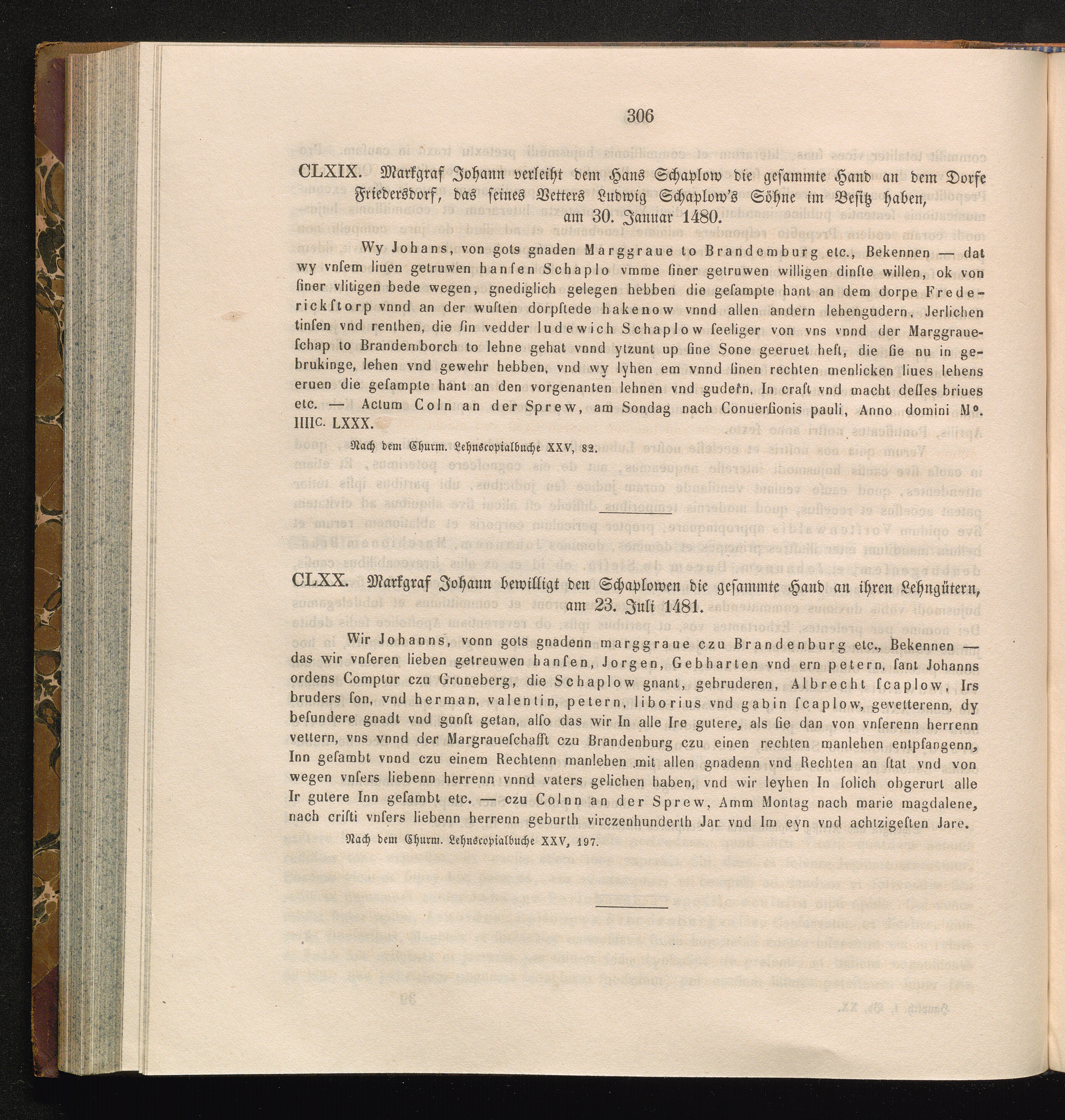 CLXX. Markgraf Johann bewilligt den Schaplowen die gesammte Hand an ihren Lehngütern,[...]