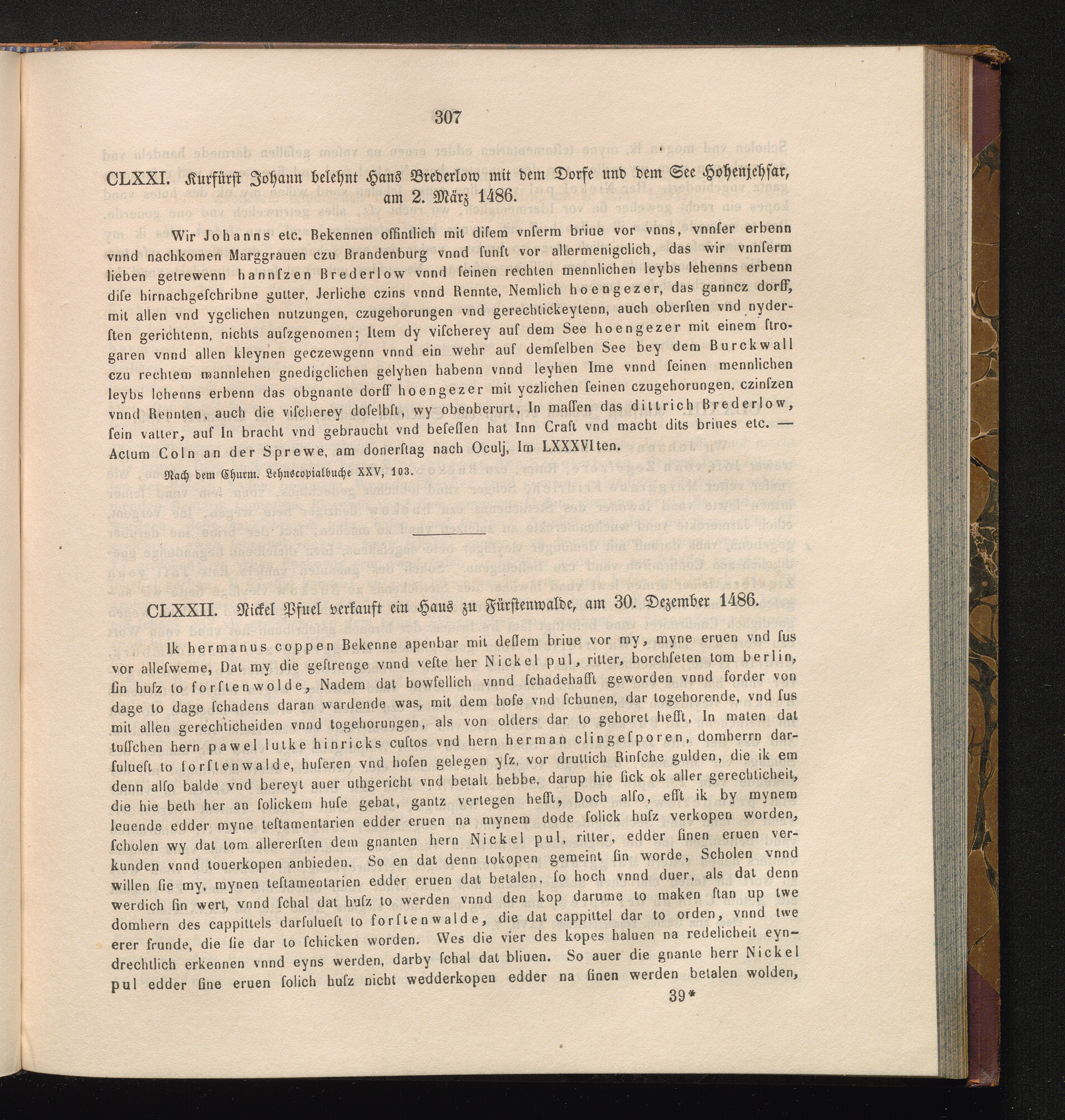 CLXXII. Nickel Pfuel verkauft ein Haus zu Fürstenwalde, am 30. Dezember 1486.