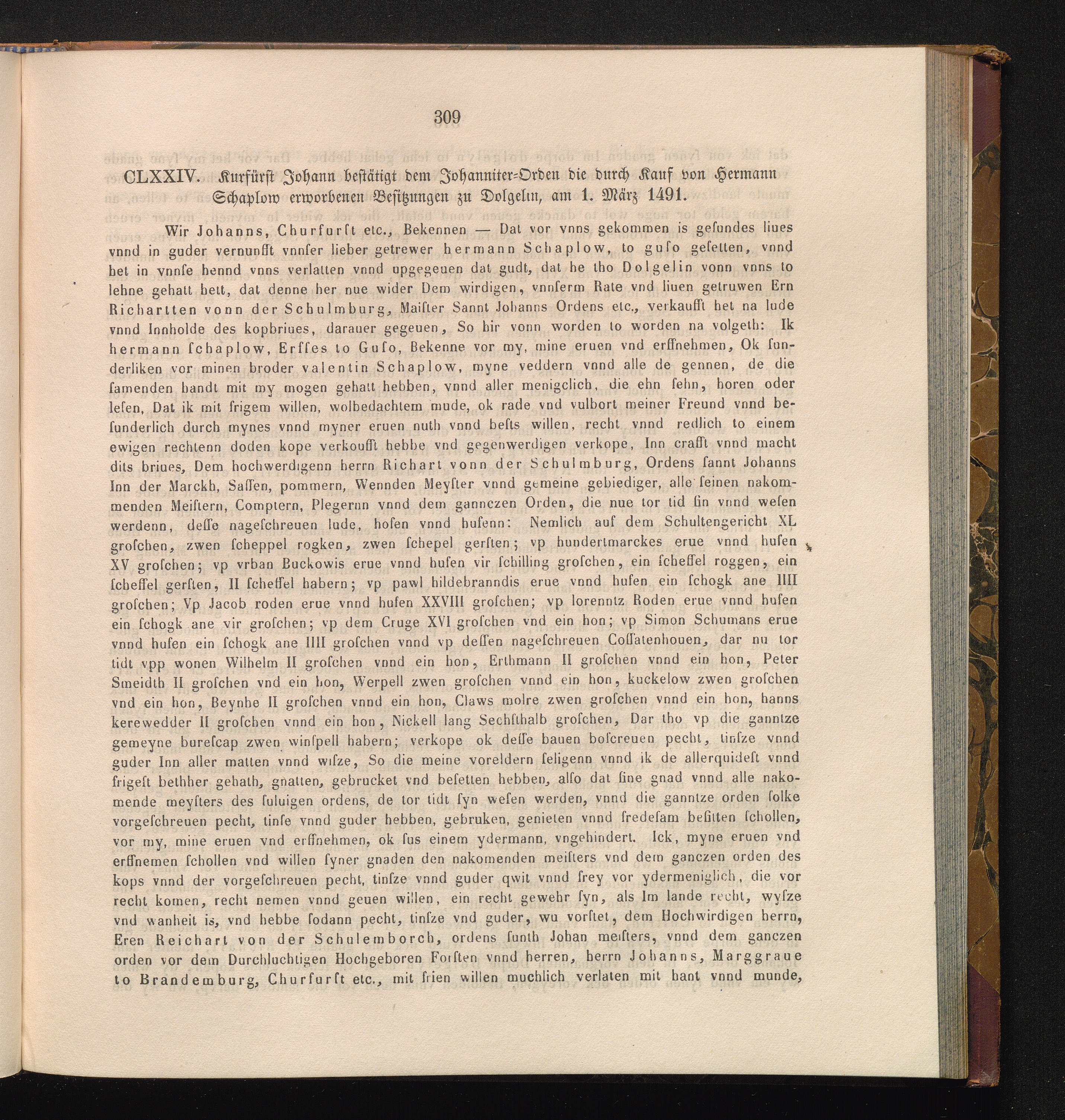 CLXXIV. Kurfürst Johann bestätigt dem Johanniter-Orden die durch Kauf von Hermann[...]