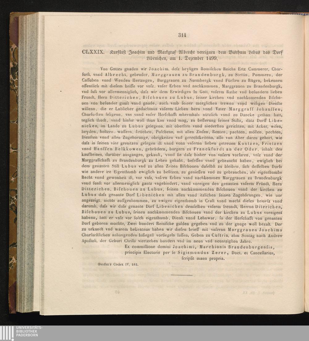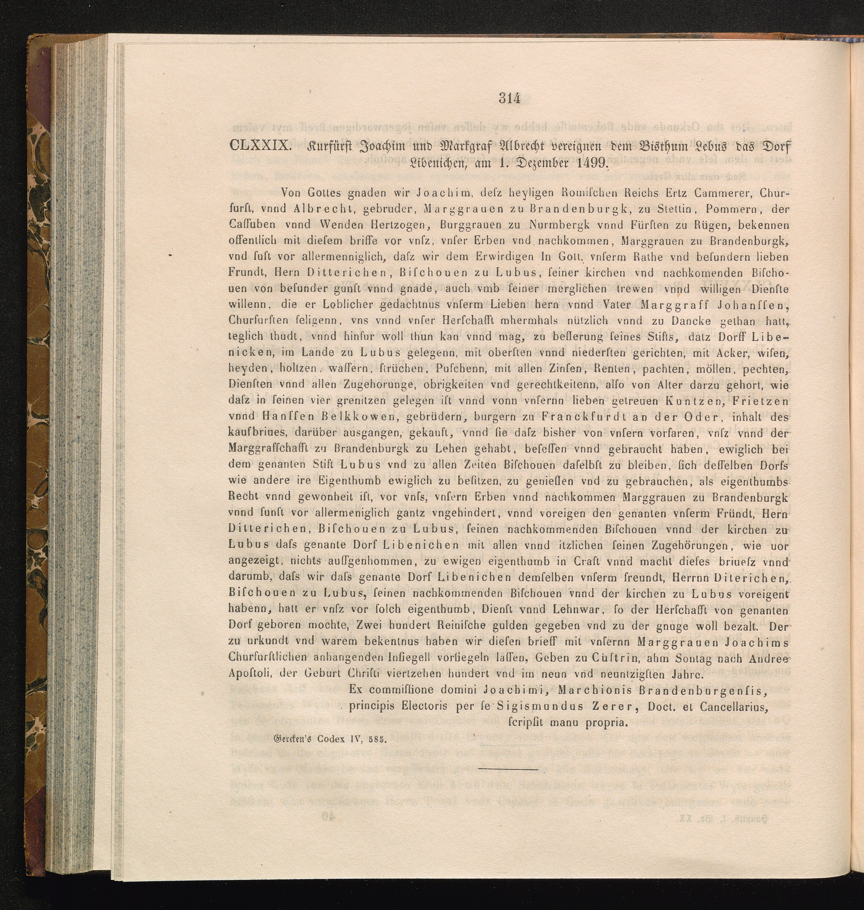 CLXXIX. Kurfürst Joachim und Markgraf Albrecht vereignen dem Bisthum Lebus das Dorf[...]