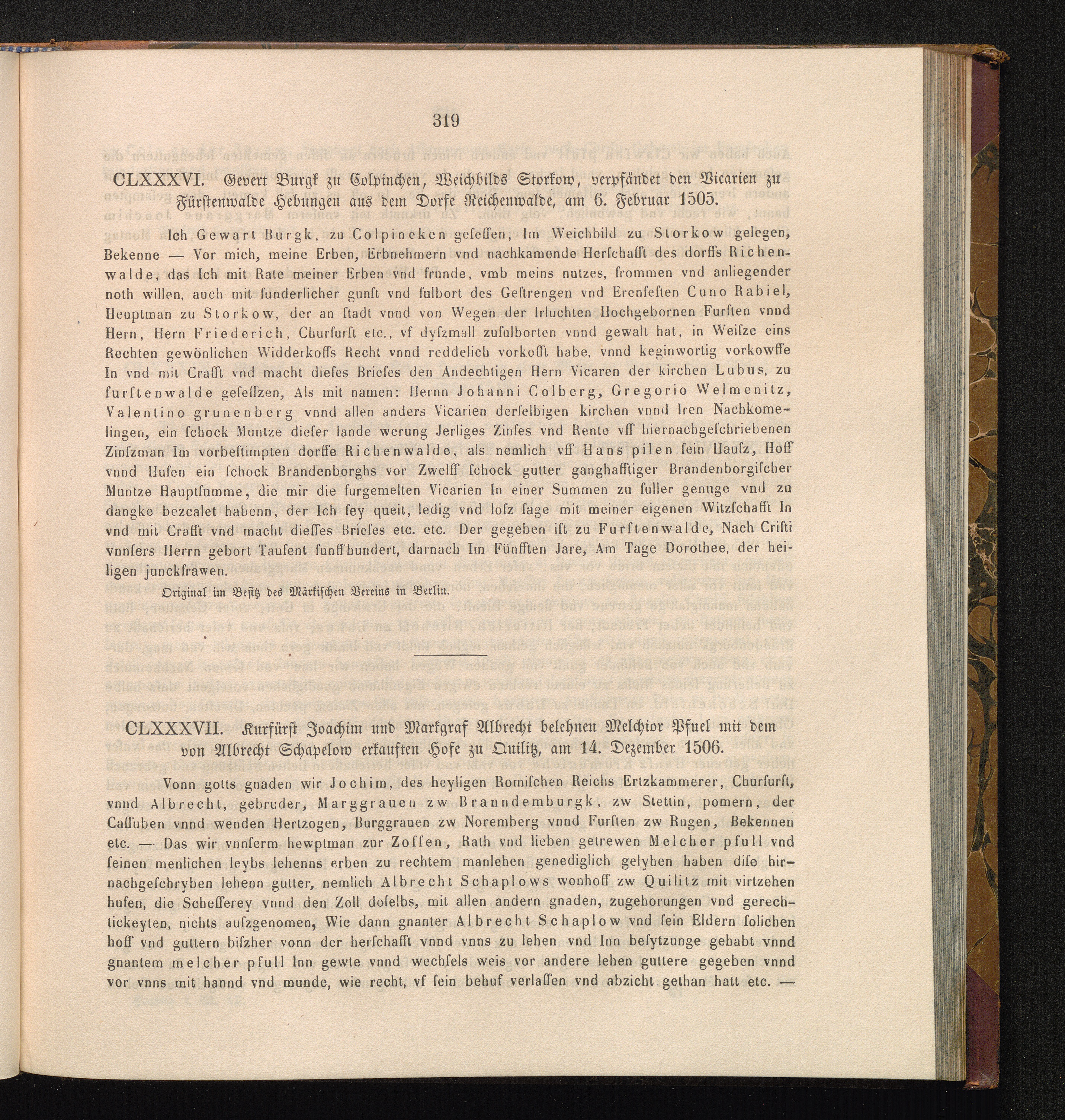 CLXXXVII. Kurfürst Joachim und Markgraf Albrecht belehnen Melchior Pfuel mit dem[...]