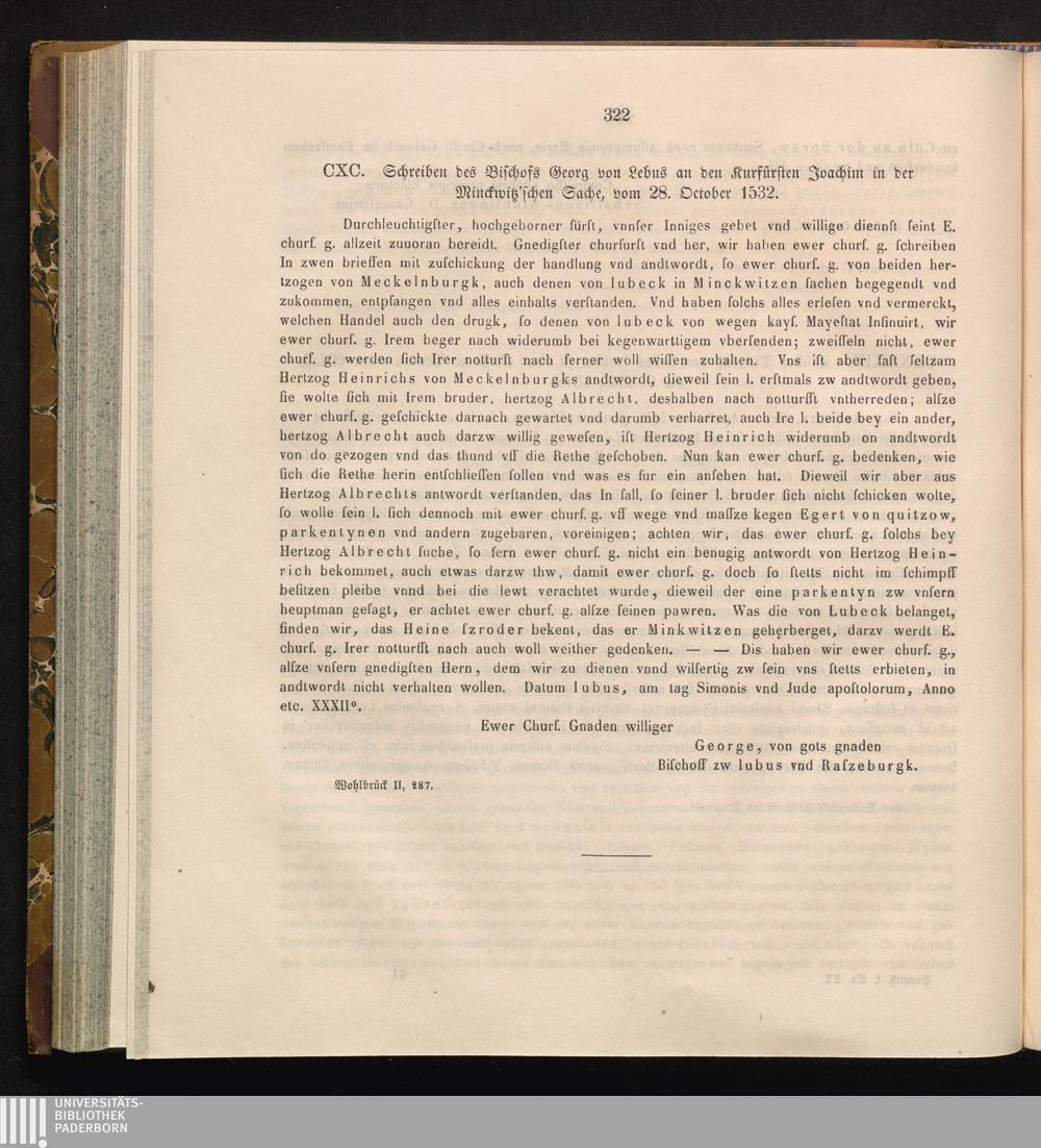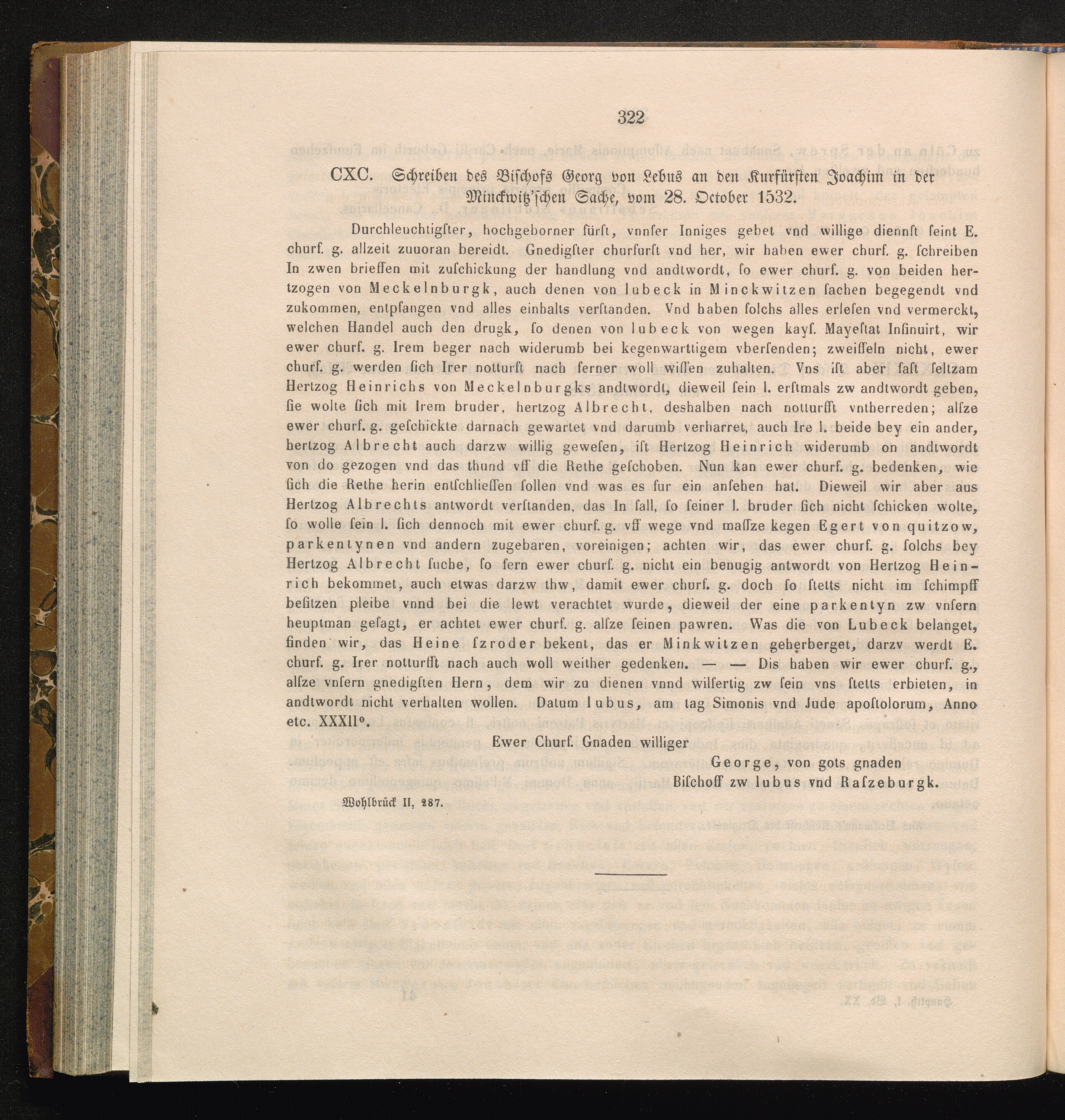 CXC. Schreiben des Bischofs Georg von Lebus an den Kurfürsten Joachim in der Minckwitz'schen[...]