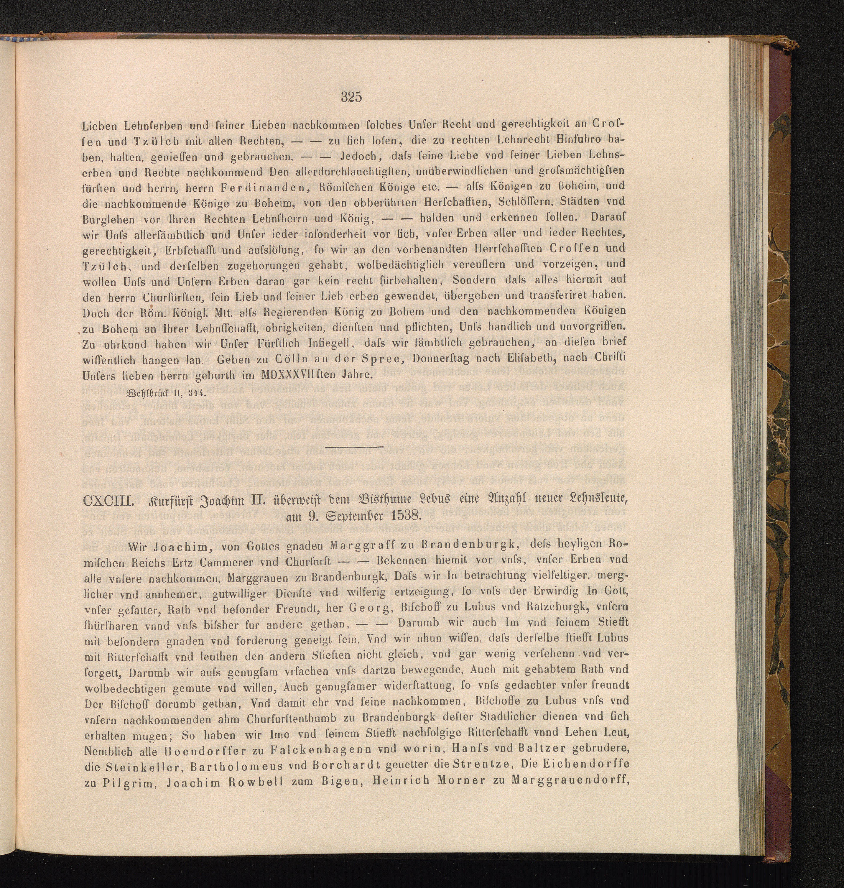 CXCIII. Kurfürst Joachim II. überweist dem Bisthume Lebus eine Anzahl neuer Lehnsleute,[...]