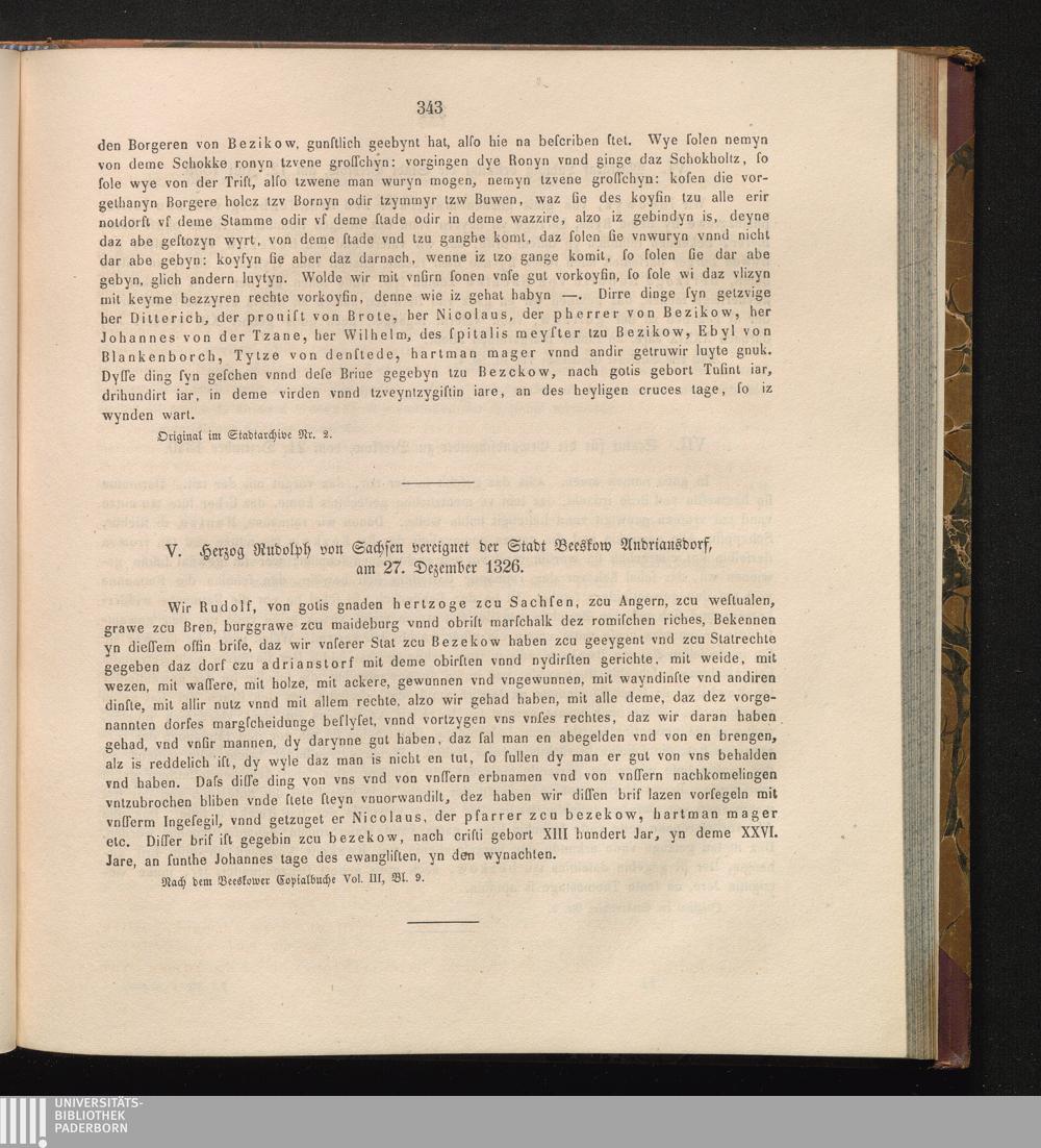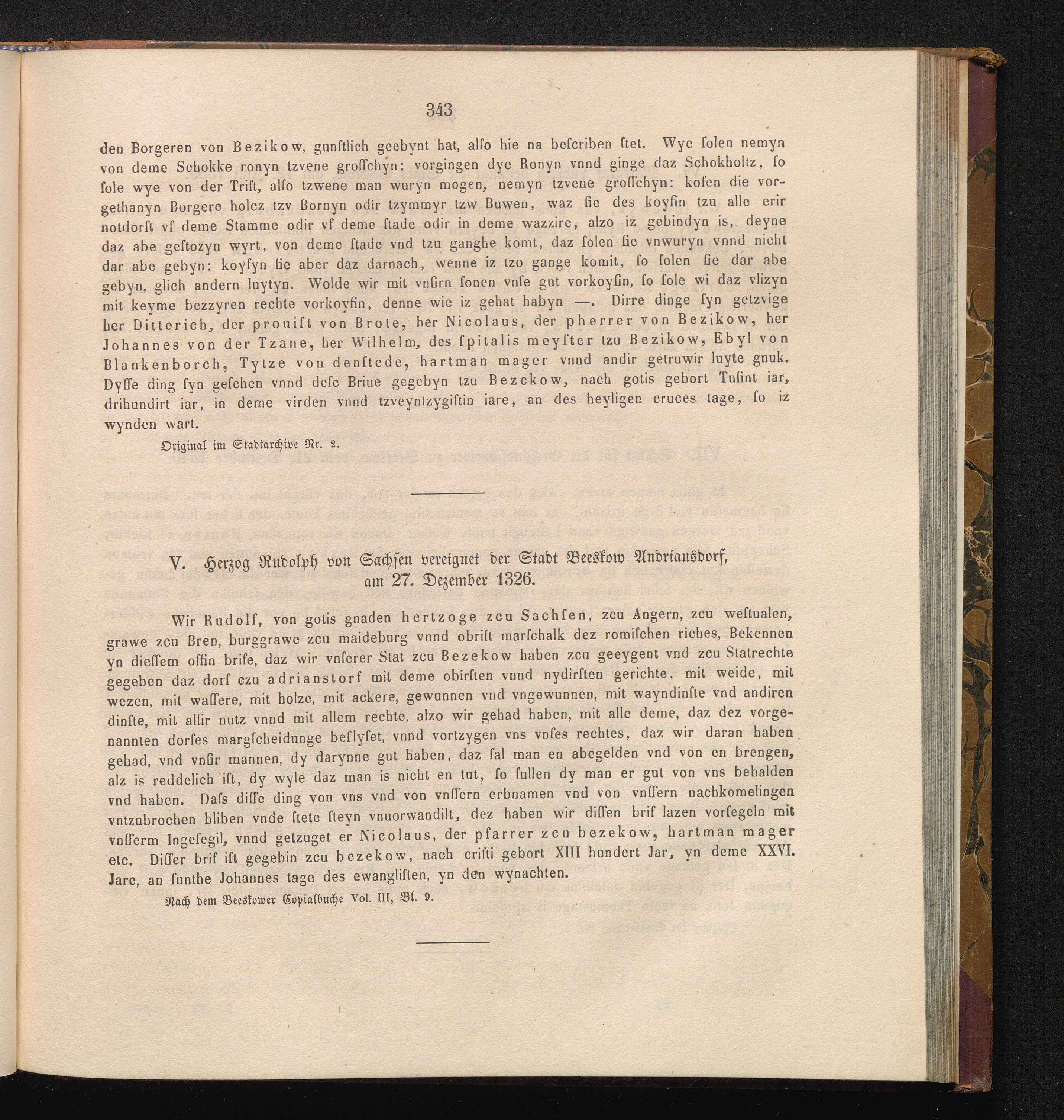 V. Herzog Rudolph von Sachsen vereignet der Stadt Beeskow Andriansdorf, am 27. Dezember[...]