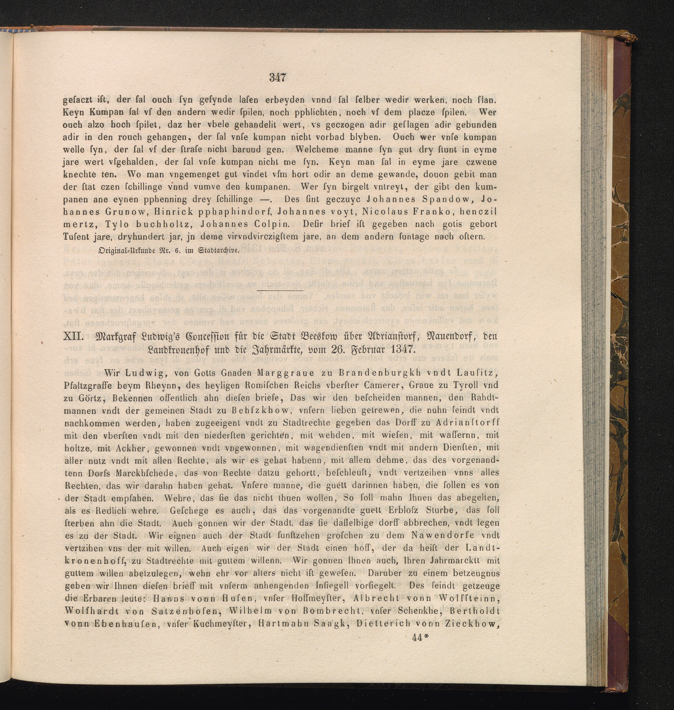 XII. Markgraf Ludwig's Concession für die Stadt Beeskow über Adrianstorf, Nauendorf,[...]