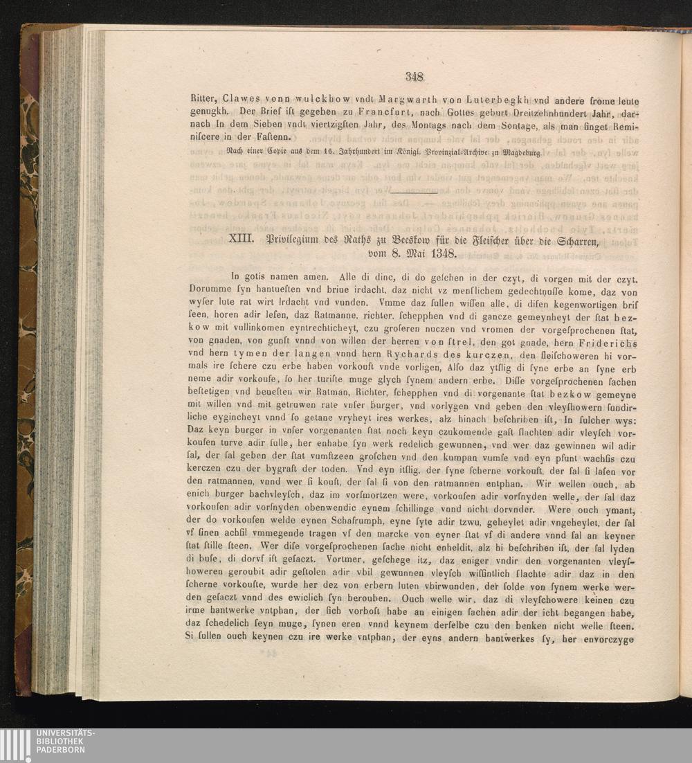 XIII. Privilegium des Raths zu Beeskow für die Fleischer über die Scharren, vom 8.[...]