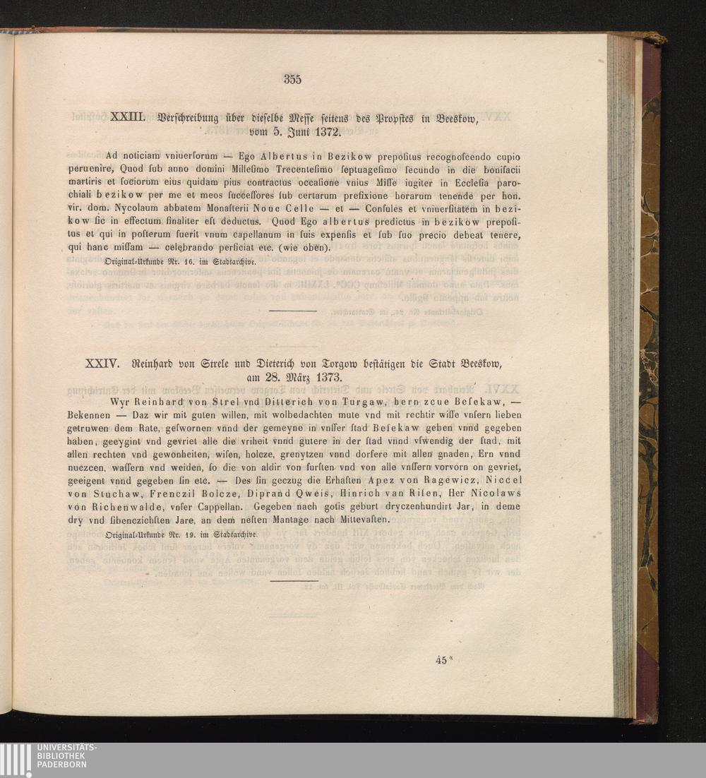XXIV. Reinhard von Strele und Dieterich von Torgow bestätigen die Stadt Beeskow,[...]