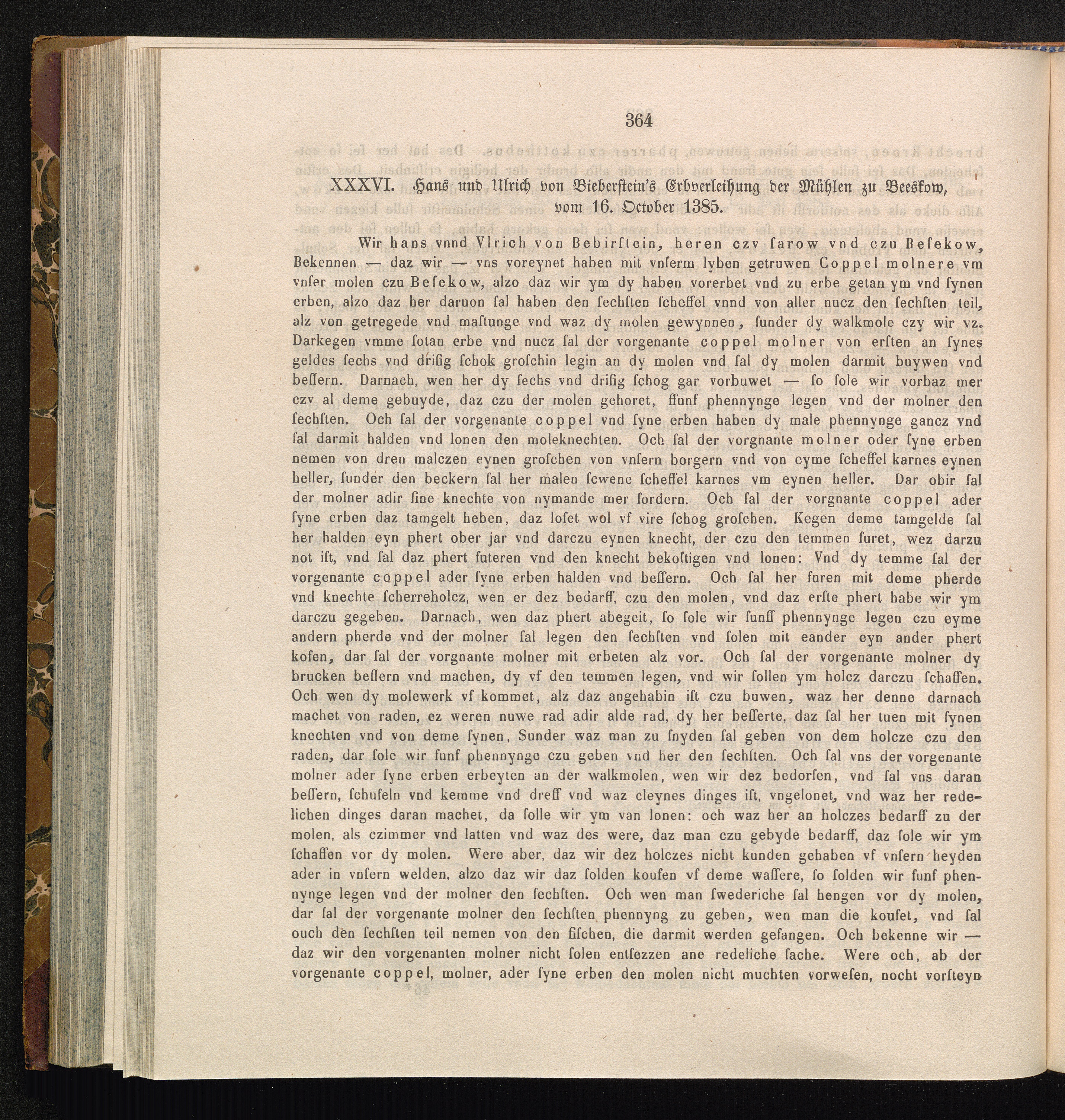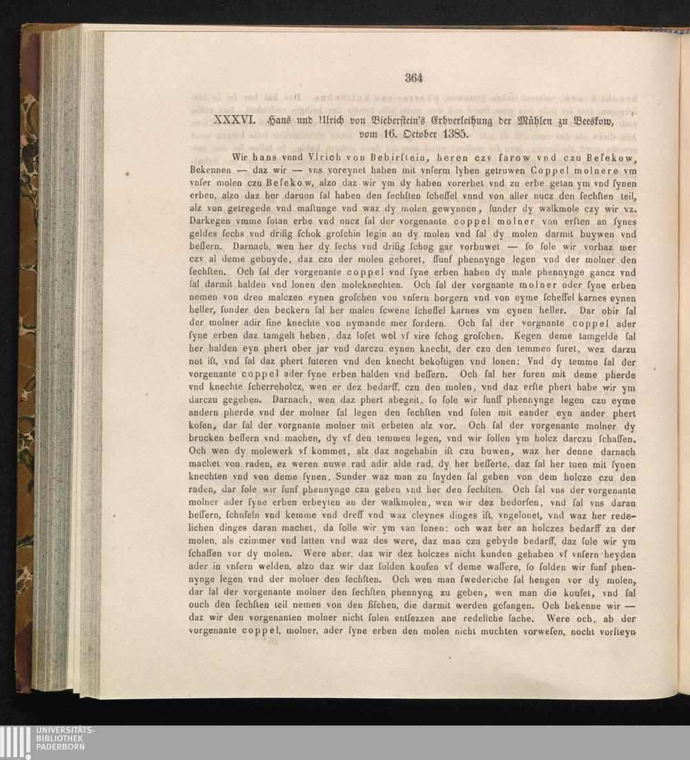 XXXVI. Hans und Ulrich von Bieberstein's Erbverleihung der Mühlen zu Beeskow, vom[...]