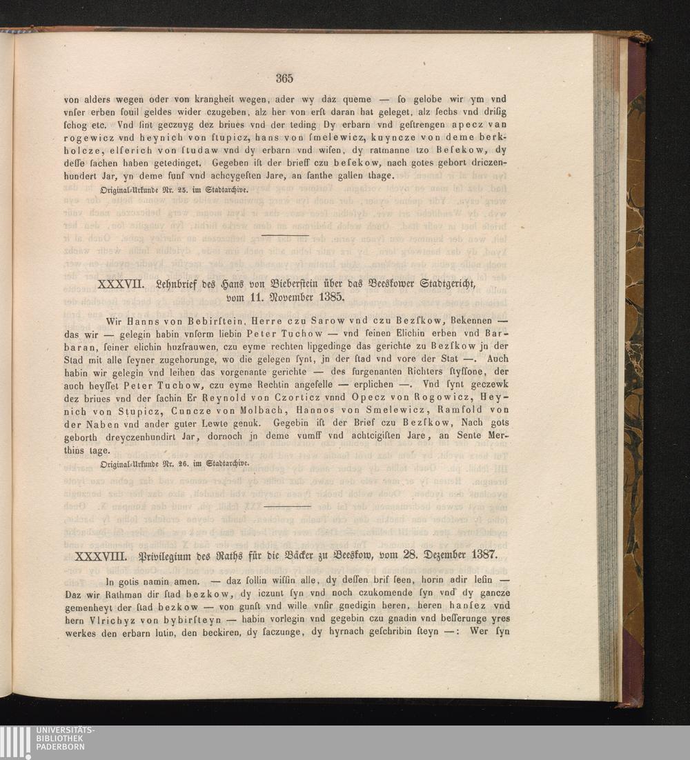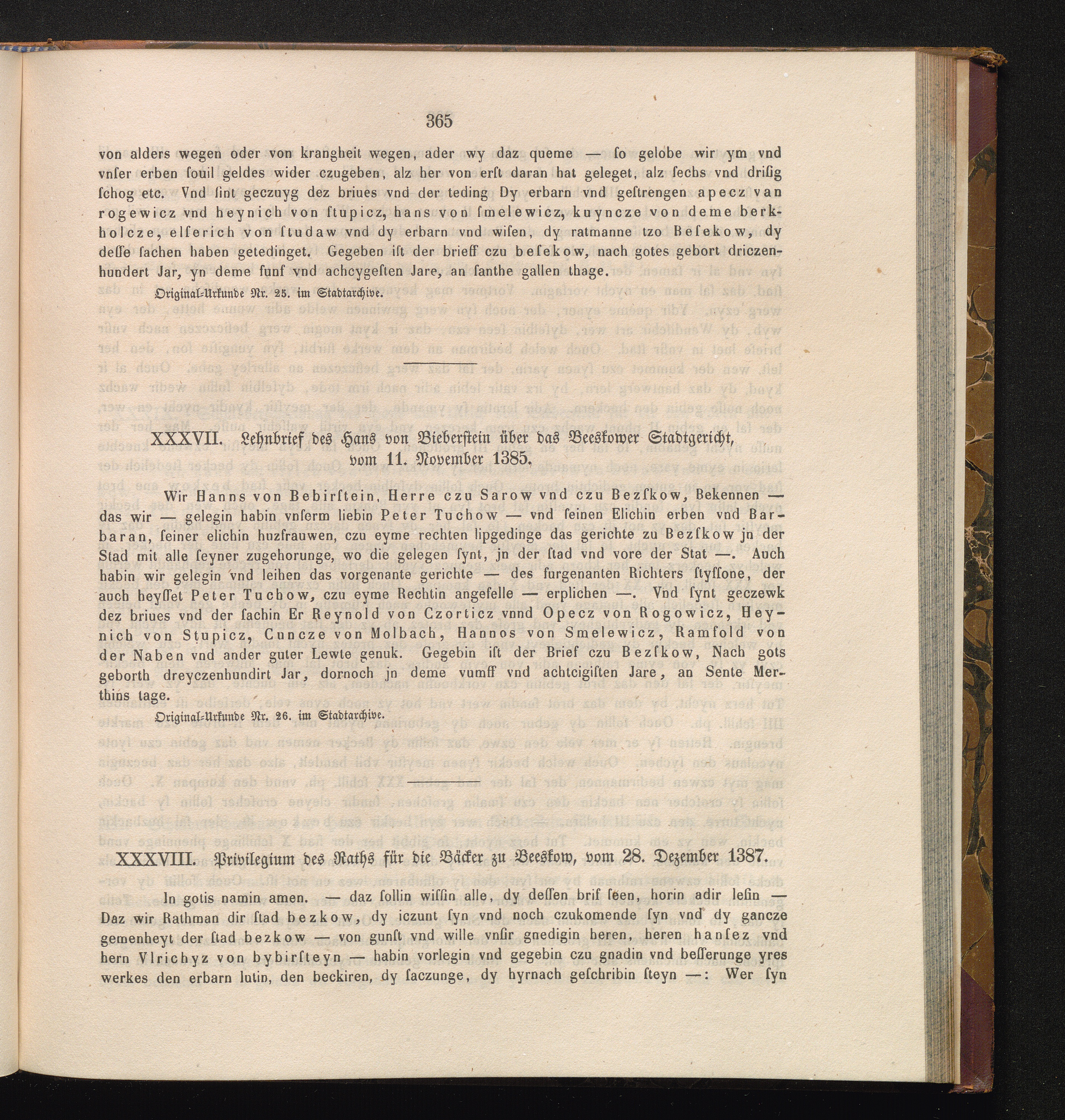 XXXVIII. Privilegium des Raths für die Bäcker zu Beeskow, vom 28. Dezember 1387.