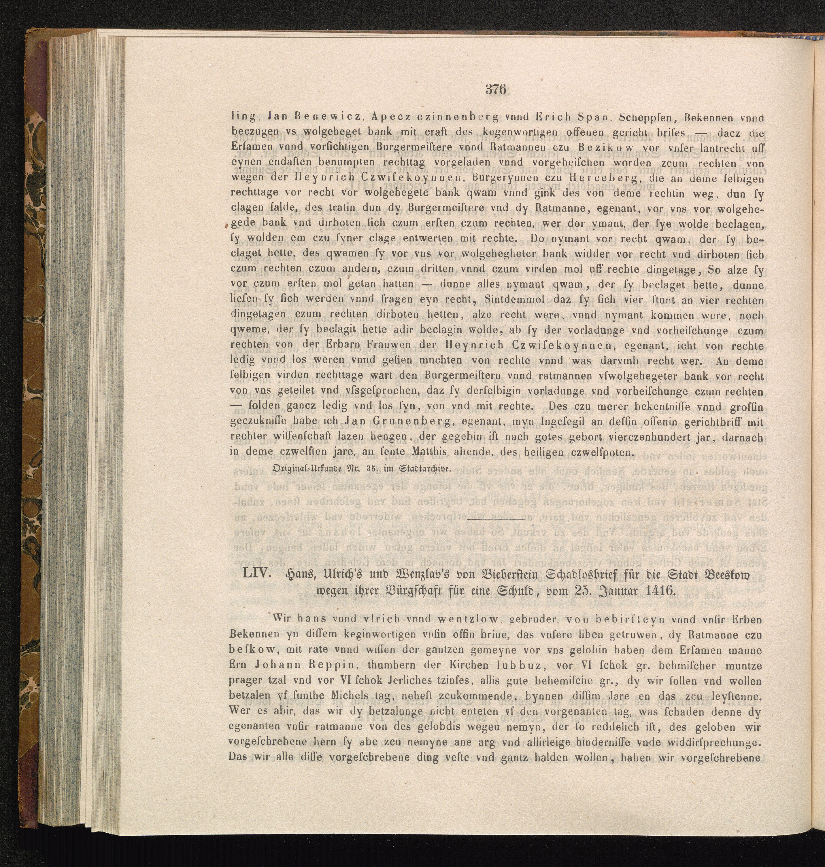 LIV. Hans, Ulrich's und Wenzlav's von Bieberstein Schadlosbrief für die Stadt Beeskow[...]