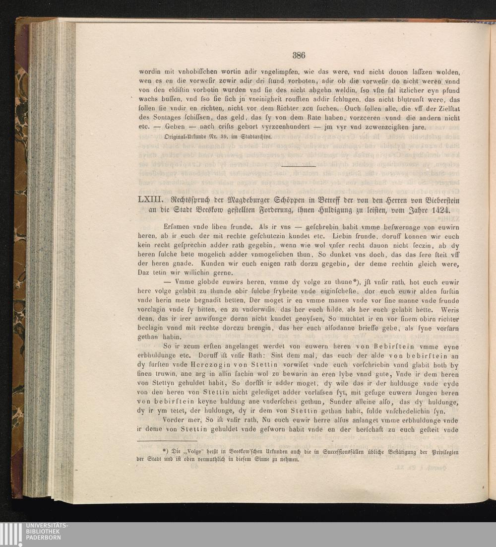 LXIII. Rechtsspruch der Magdeburger Schöppen in Betreff der von den Herren von Bieberstein[...]