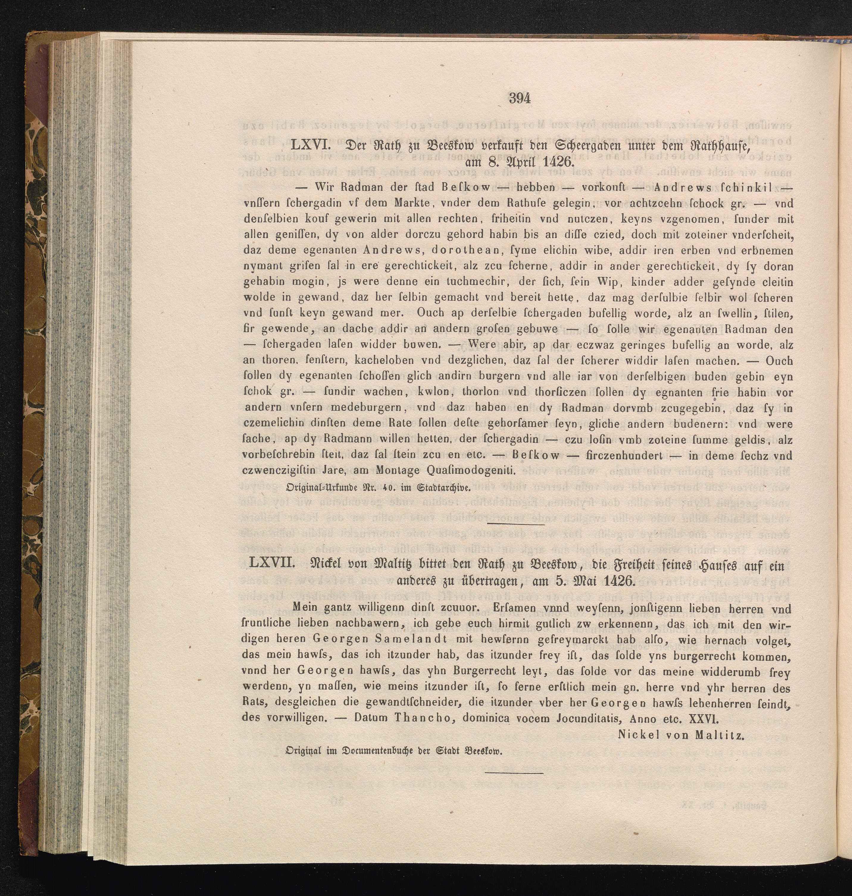LXVII. Nickel von Maltitz bittet den Rath zu Beeskow, die Freiheit seines Hauses[...]