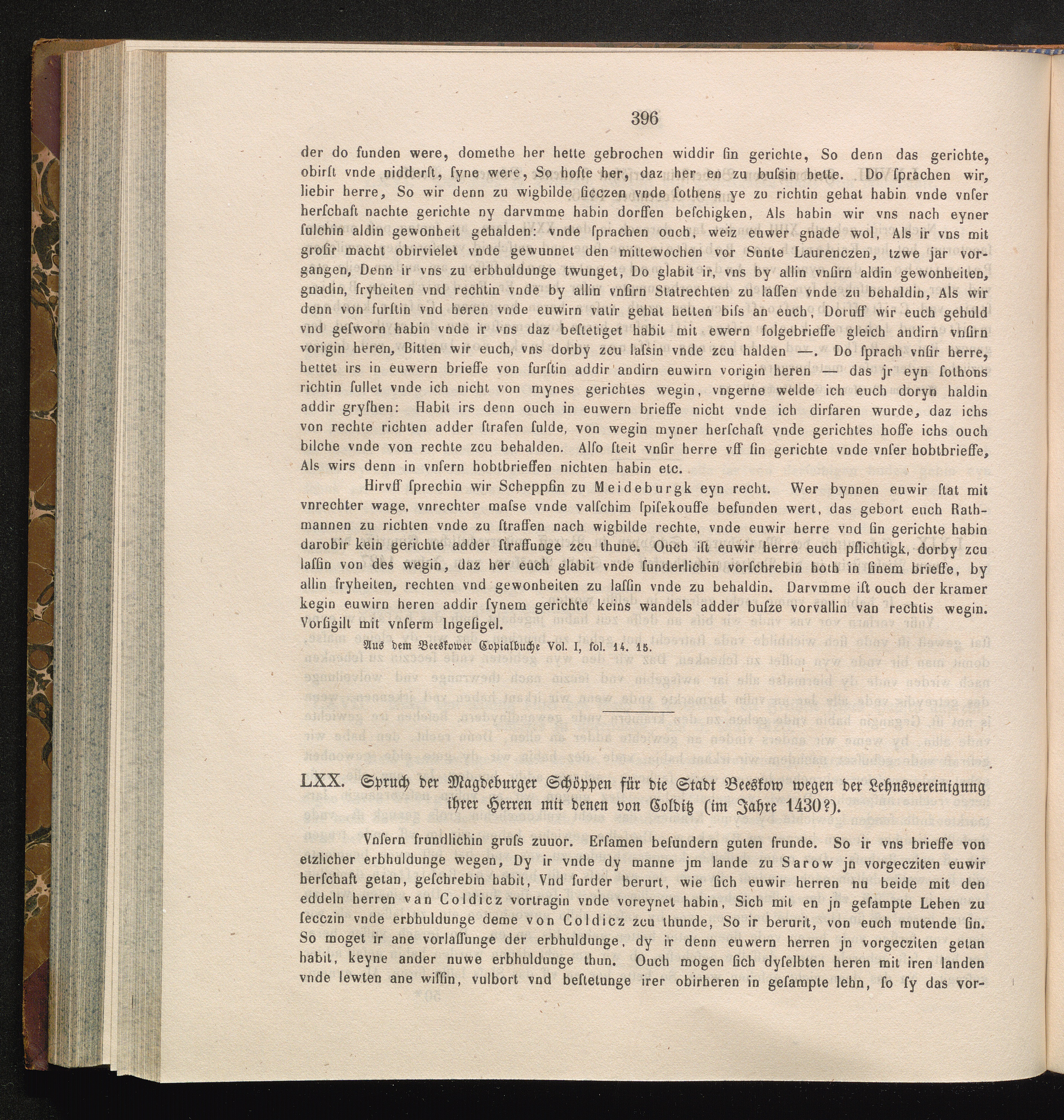 LXX. Spruch der Magdeburger Schöppen für die Stadt Beeskow wegen der Lehnsvereinigung[...]