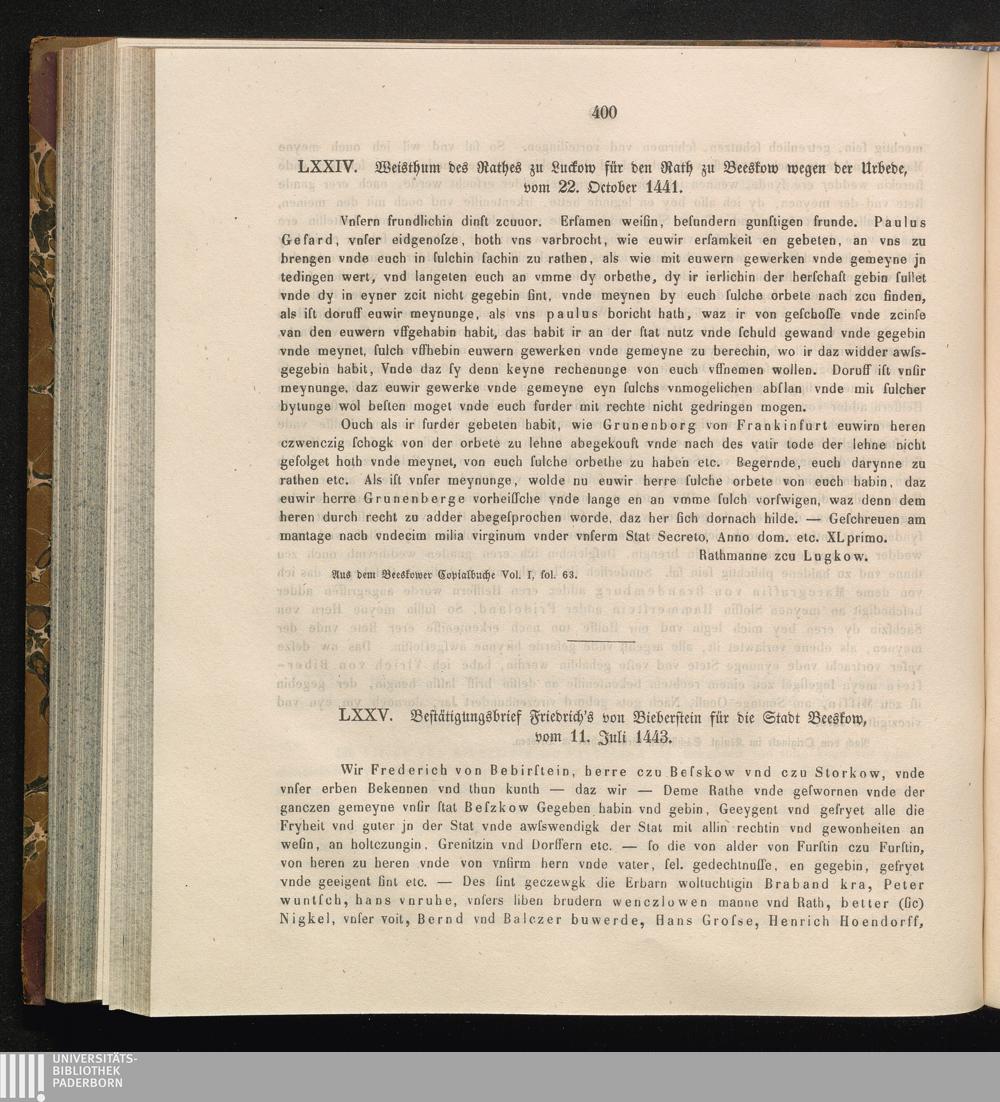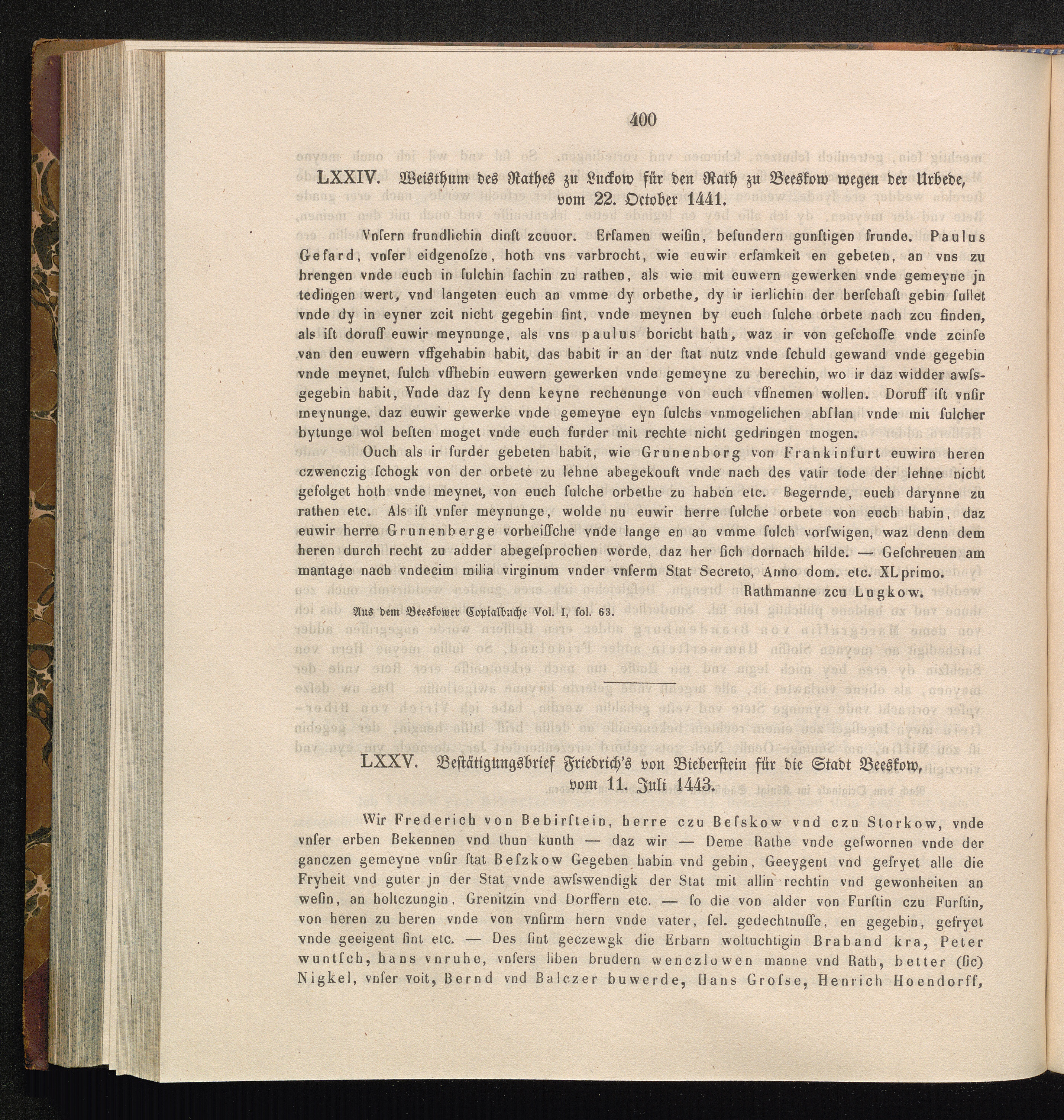 LXXV. Bestätigungsbrief Friedrich's von Bieberstein für die Stadt Beeskow, vom 11.[...]