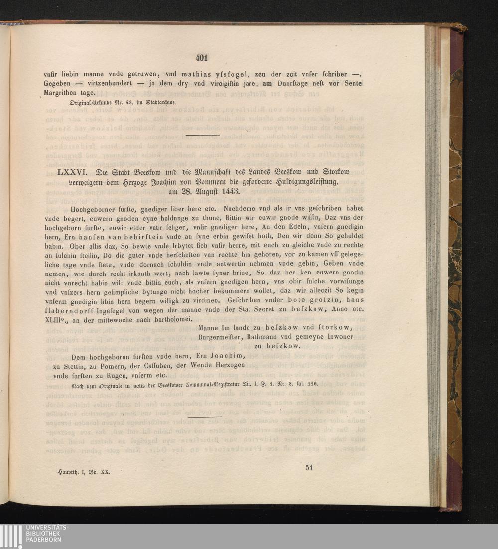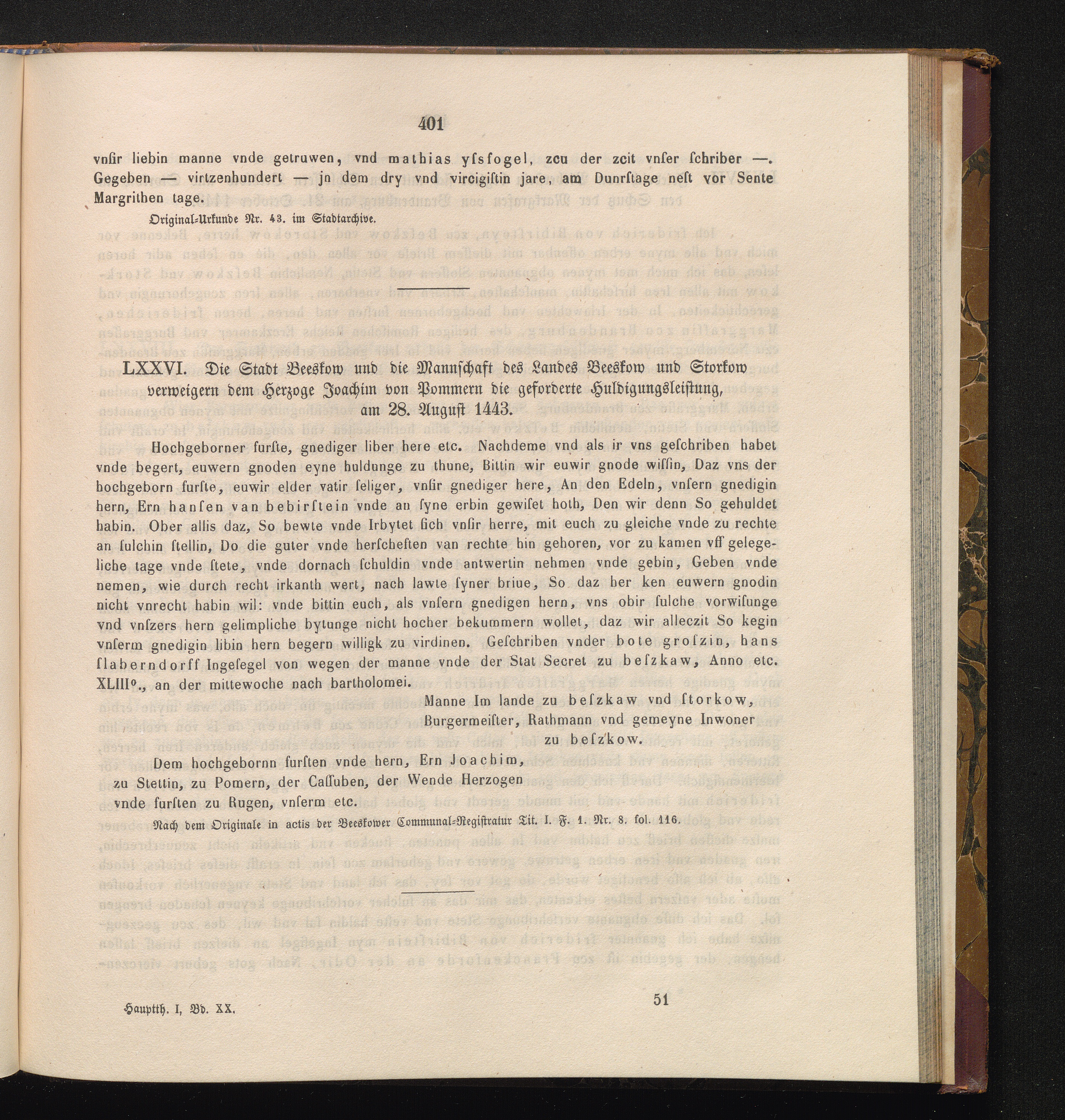 LXXVI. Die Stadt Beeslow und die Mannschaft des Landes Beeskow und Storkow verweigern[...]