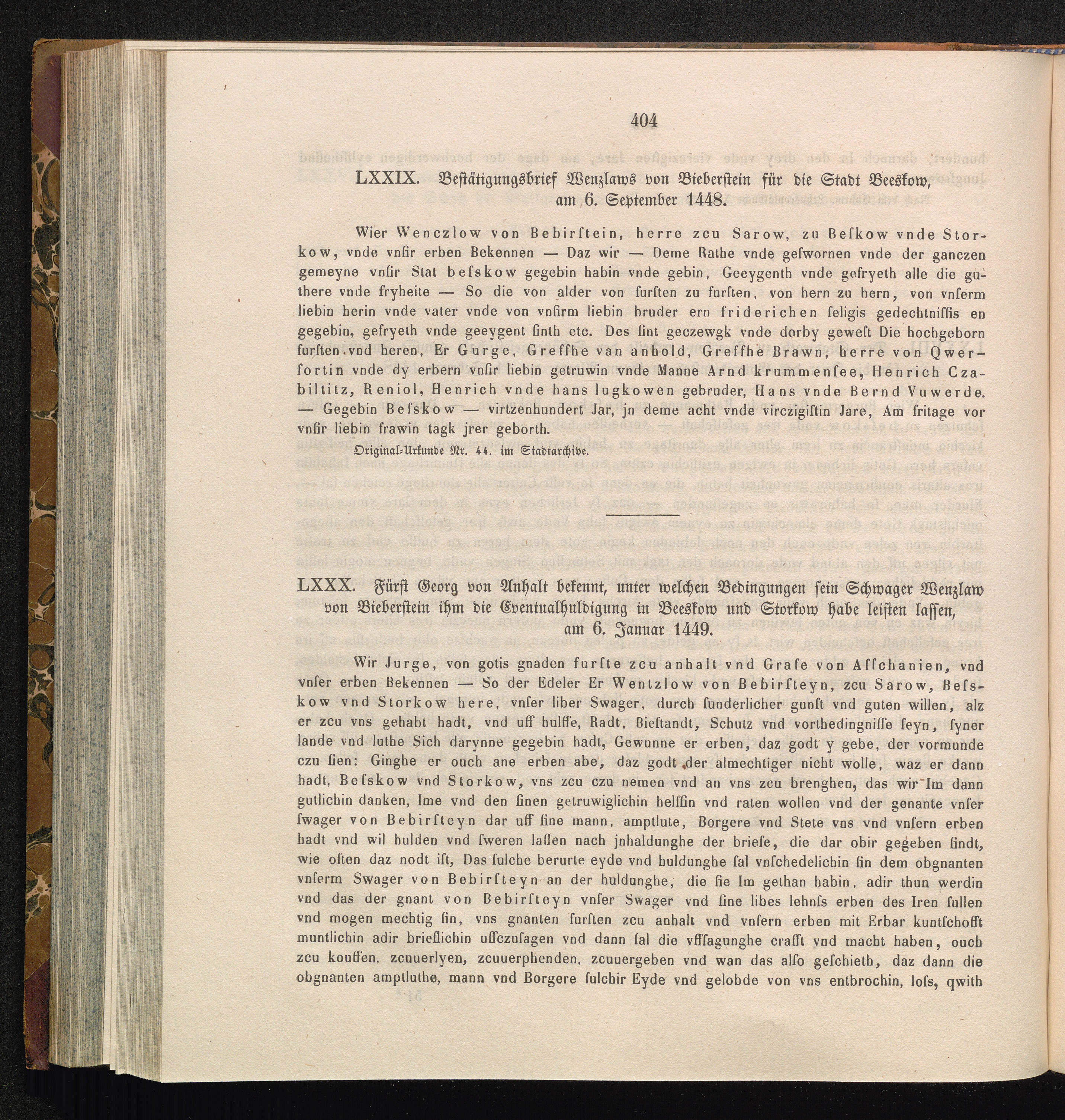 LXXX. Fürst Georg von Anhalt bekennt, unter welchen Bedingungen sein Schwager Wenzlaw[...]