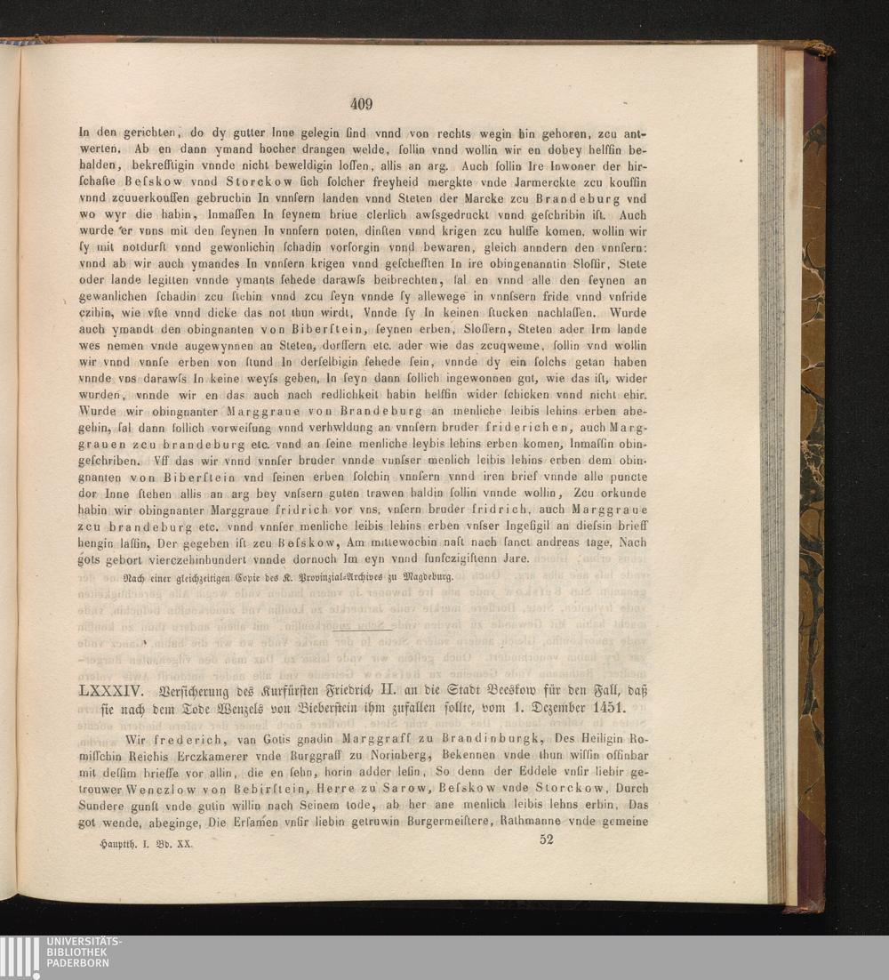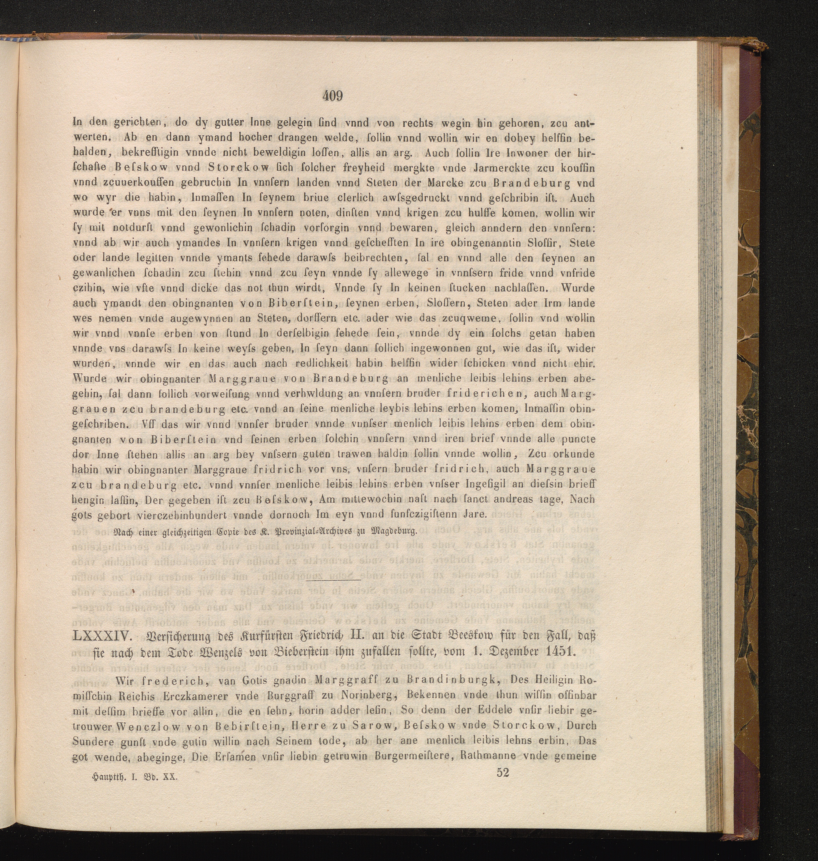 LXXXIV. Versicherung des Kurfürsten Friedrich II. an die Stadt Beeskow für den Fall,[...]