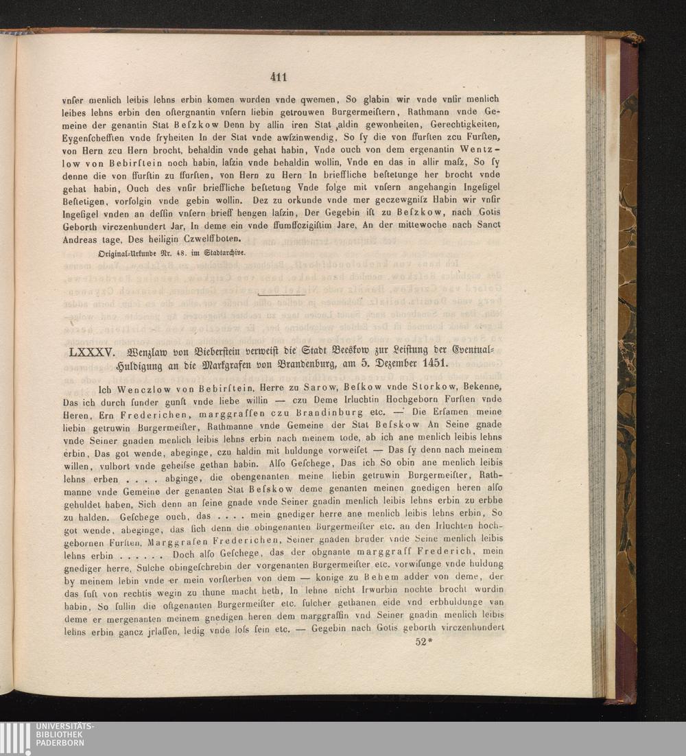 LXXXV. Wenzlaw von Bieberstein verweist die Stadt Beeskow zur Leistung der Eventual-Huldigung[...]