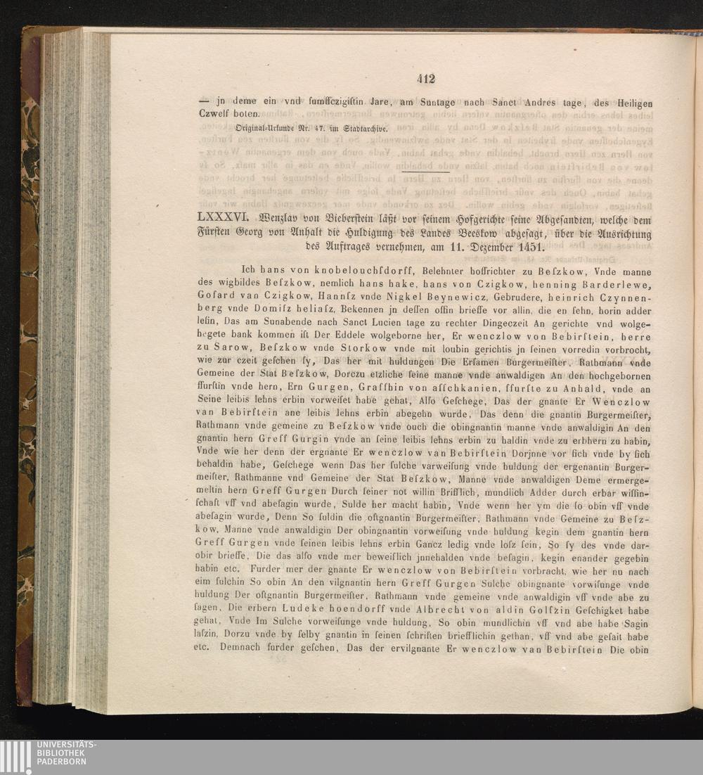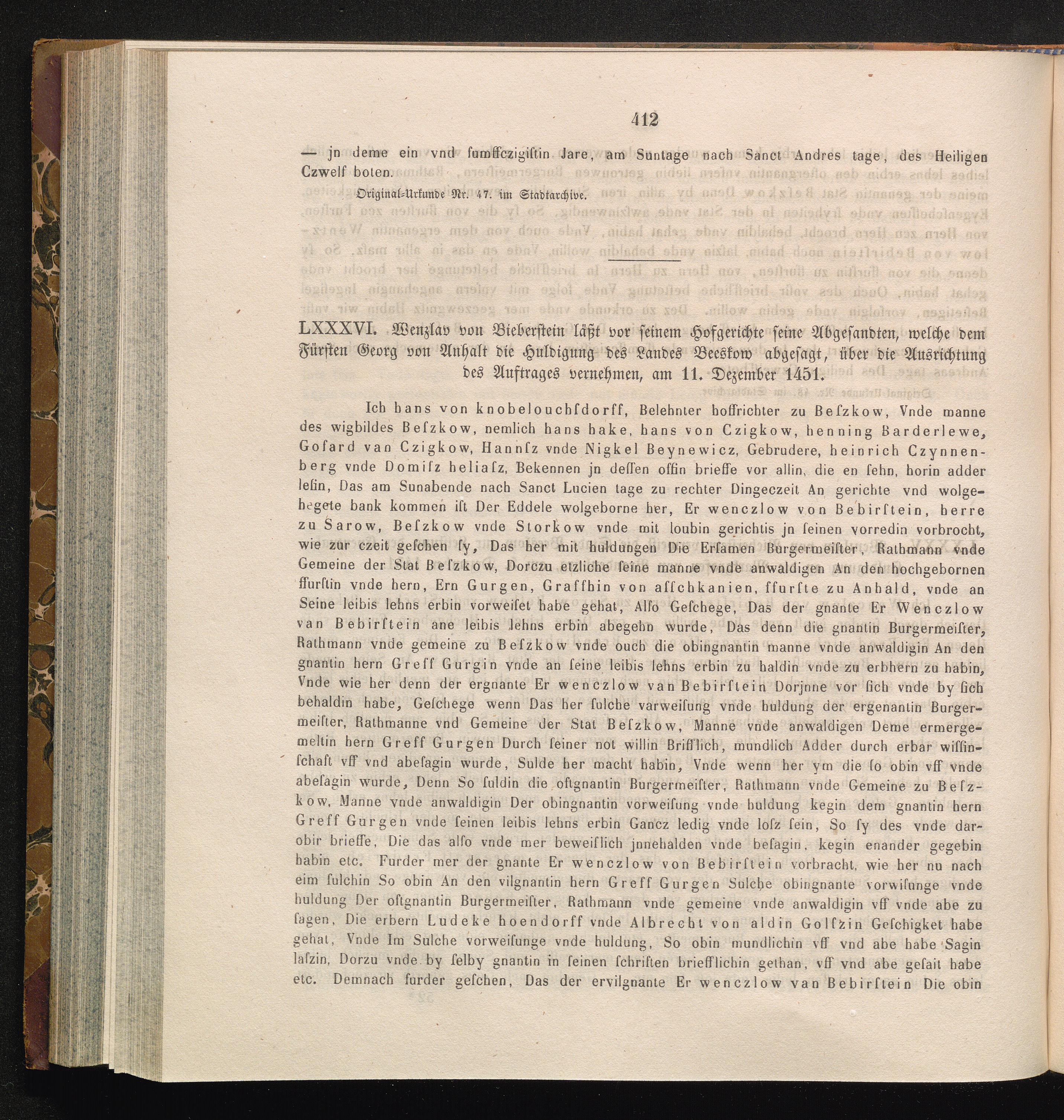 LXXXVI. Wenzlaw von Bieberstein läßt vor seinem Hofgerichte seine Abgesandten, welche[...]