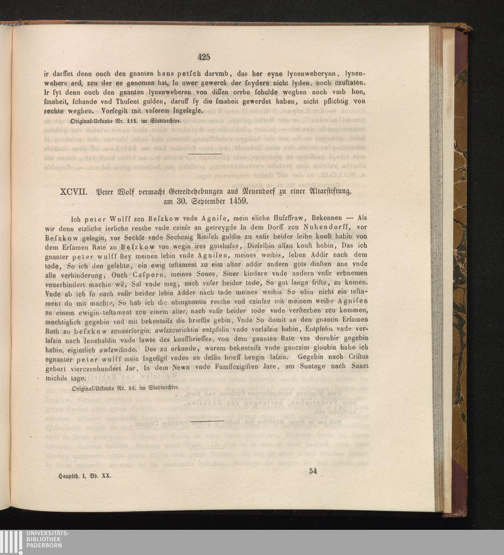 XCVII. Peter Wolf vermacht Getreidehebungen aus Neuendorf zu einer Altarstiftung,[...]