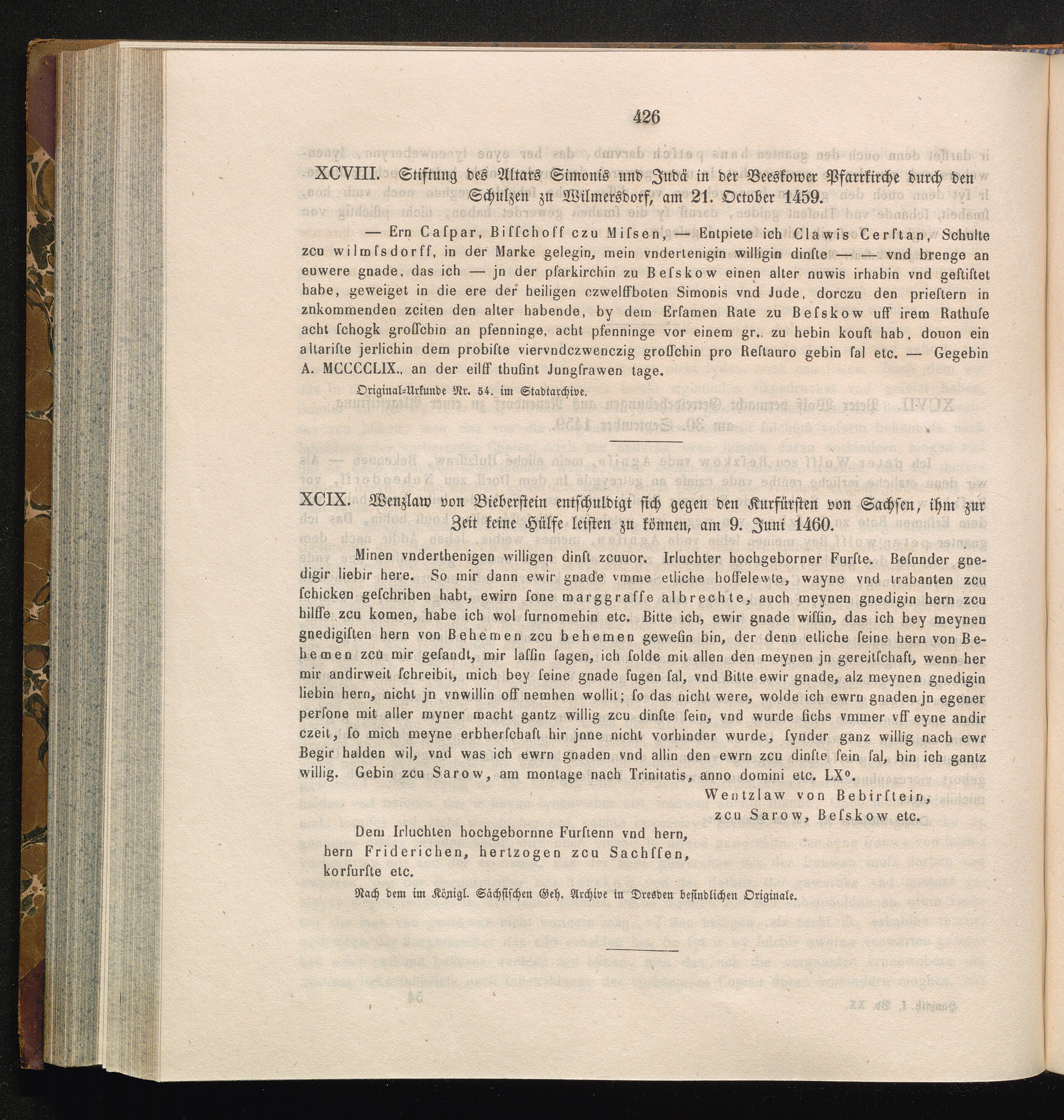 XCIX. Wenzlaw von Bieberstein entschuldigt sich gegen den Kurfürsten von Sachsen,[...]